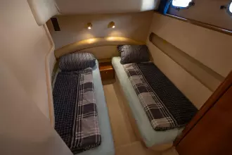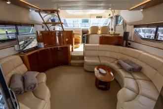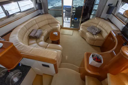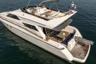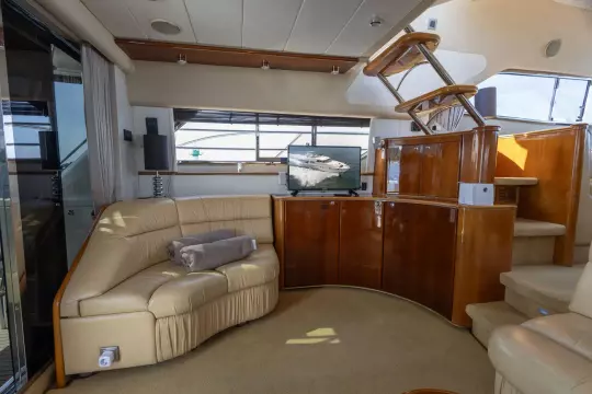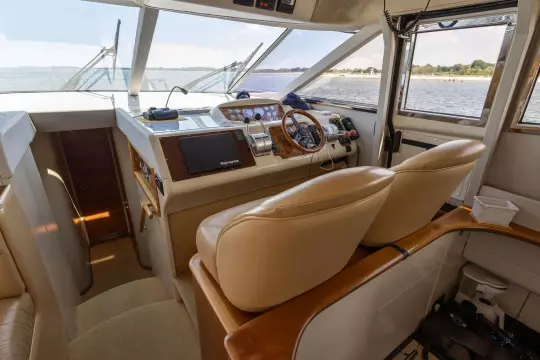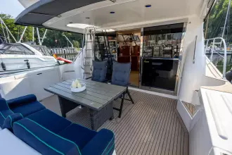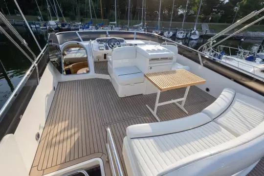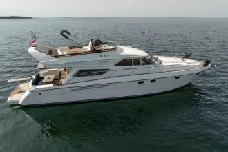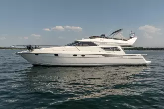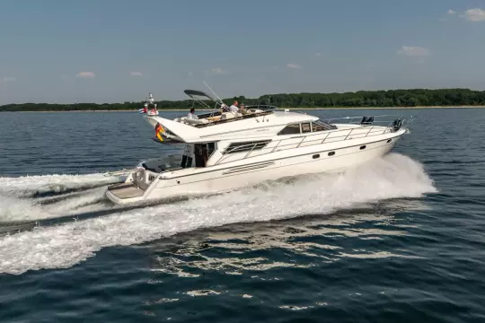 1996 Model, Built 1995 • EU tax paid • Twin Wellenantrieb D-Drive MAN D2848 engines • White hull • 3 Cabins accommodating 6 guests, plus 2 crew • Ceramic glass cooktop • Teak deck and flybridge • Integrated bathing platform • Electric gangway • Deck shower • Auto Pilot • Man overboard system • Depth sounder and speedometer • Bow and stern thrusters • Trim Tabs • Generator • Hot water system • Air-conditioning and heater • TV • Cockpit speakers • Serviced 2025 • Recent upgrades