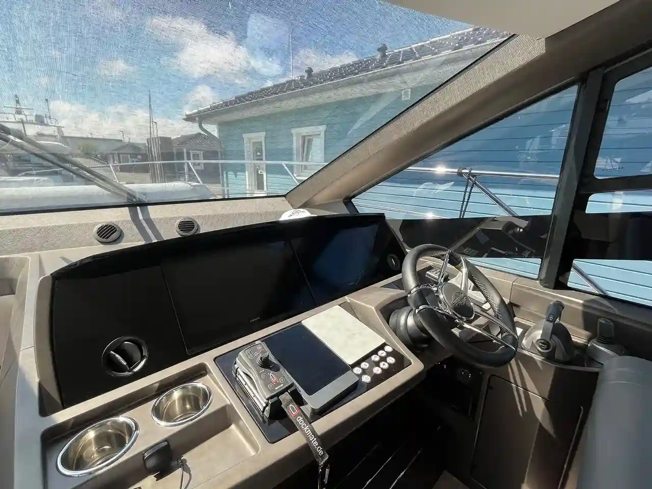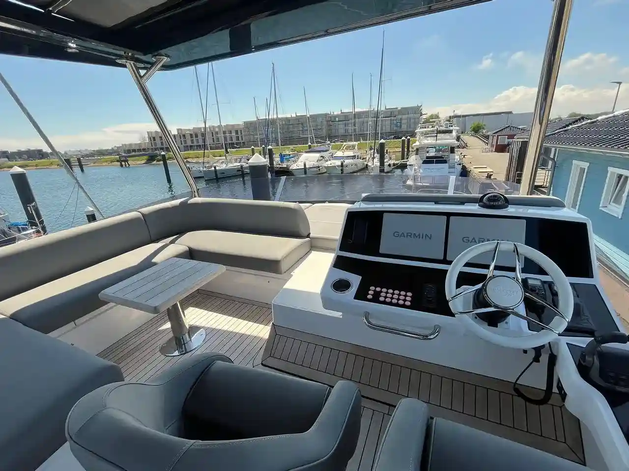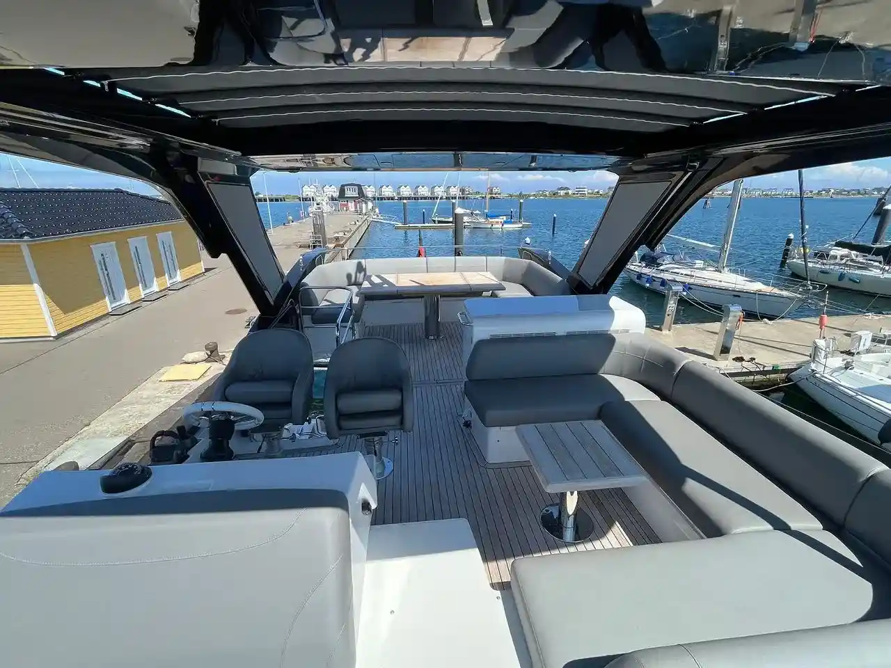 A major highlight: the factory-fitted Hardtop, which provides excellent shade and protection while maintaining an open, airy feel – ideal for all-weather cruising and extended comfort on the flybridge.