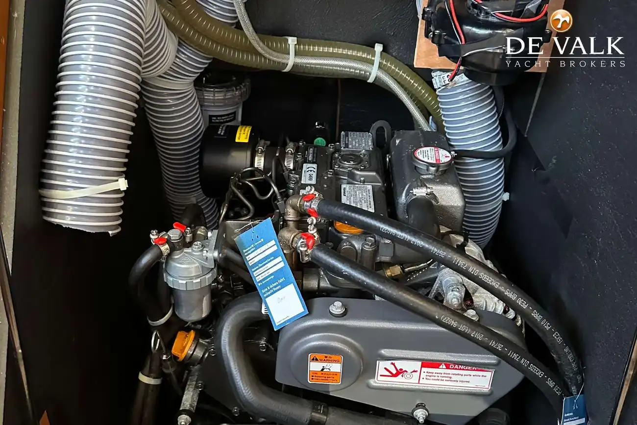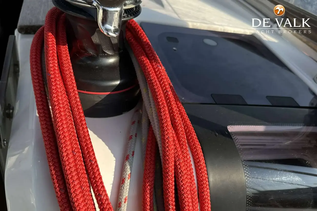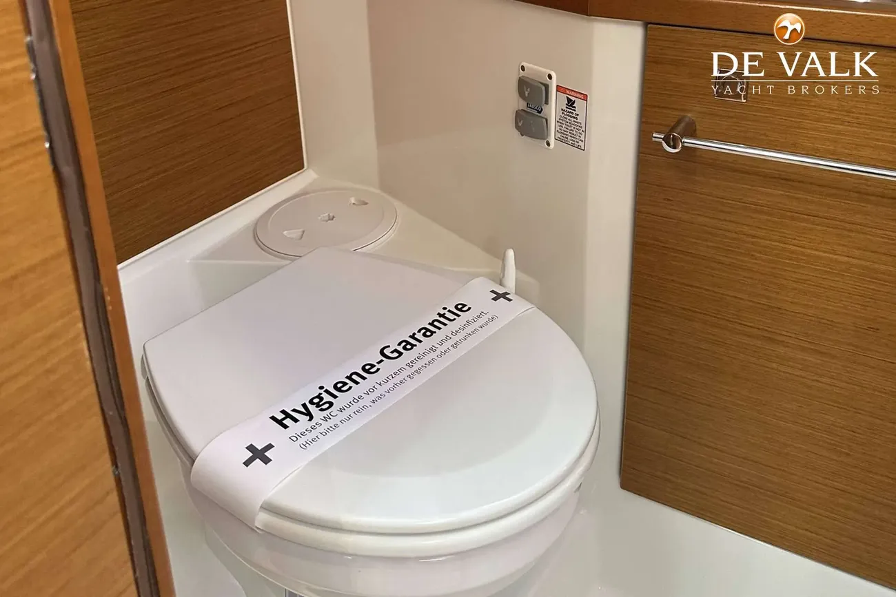 Below deck, this yacht impresses with a well-thought-out spatial concept. Fixed doors ensure stability in all weather conditions. Indirect LED lighting creates a pleasant ambiance for long evenings on board. The spacious galley offers plenty of workspace and a large refrigerator – perfect for longer cruises.