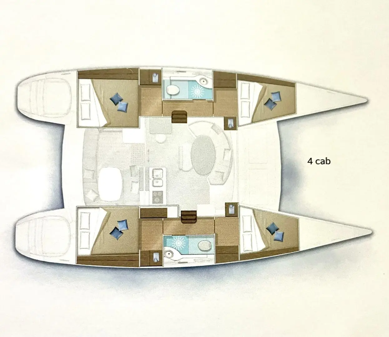 - Air Conditioner: Mabru 12,000 BTU – split between both aft cabins; can isolate to supercool one cabin