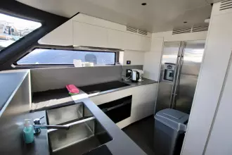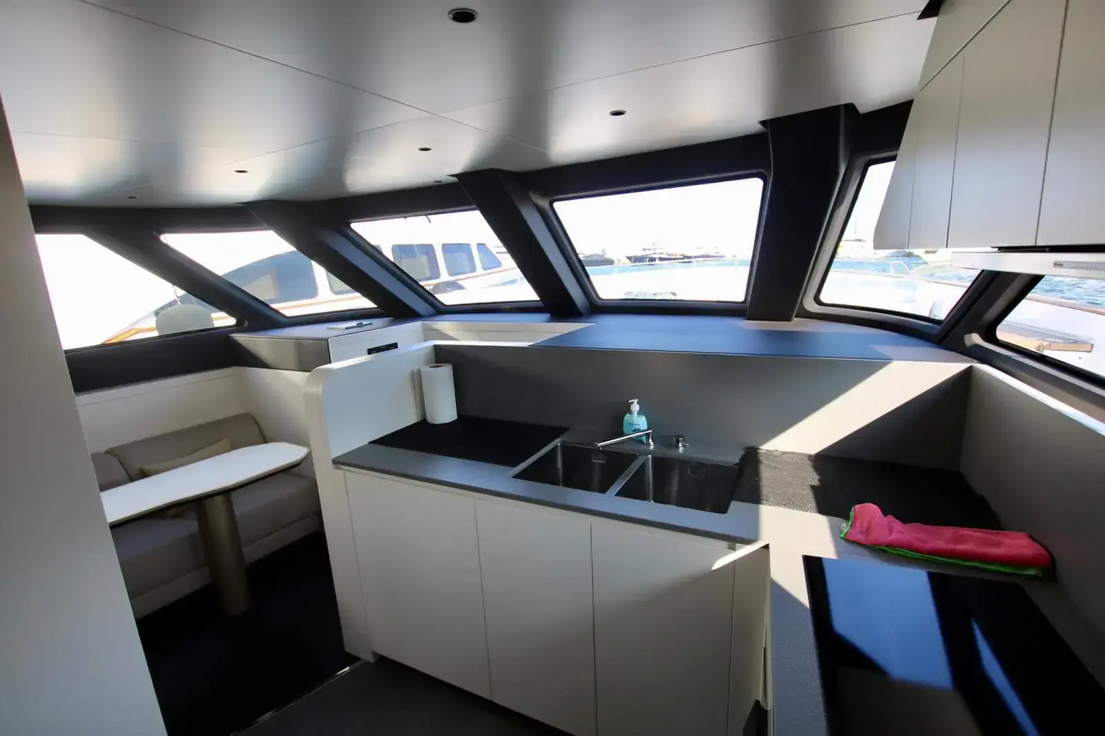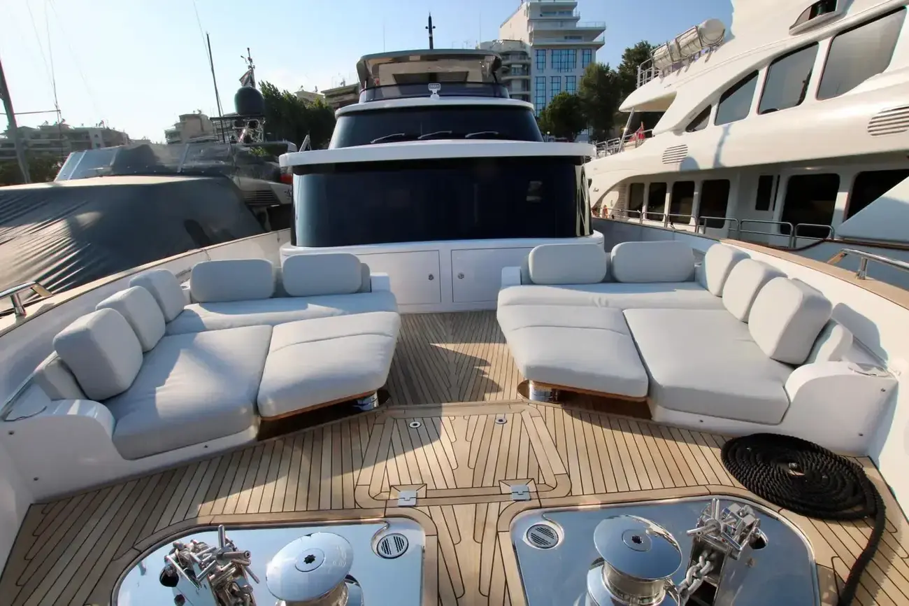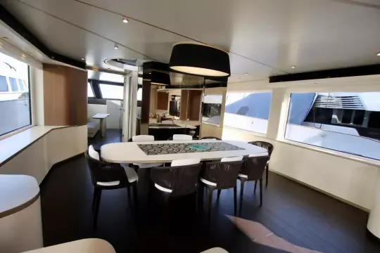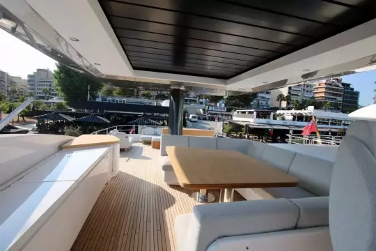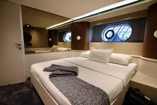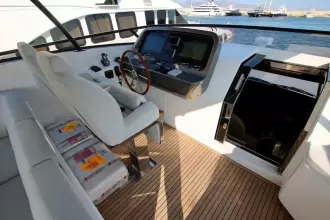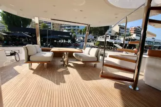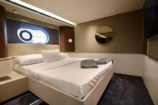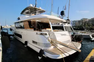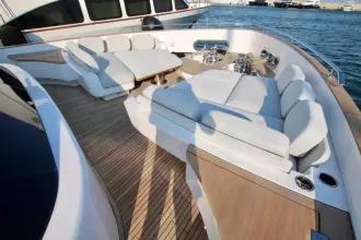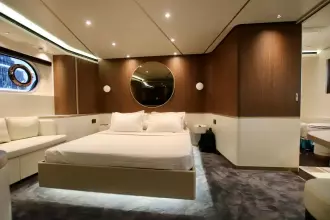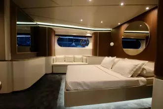 Manufactured in 2021, this stunning yacht is strategically located in El Gouna, Egypt. It offers spacious outdoor areas, artfully combining a foredeck terrace, double sofa-cockpit, and beach club to inspire your nautical adventures. To enhance your holiday experience, it features an opening hardtop, alfresco dining, and sun loungers on the flybridge. The boat's layout includes four luxurious staterooms, comprising 3 double bed staterooms and a twin bed cabin, comfortably accommodating up to 8 guests. A full-beam master stateroom sits midship, complete with large windows, a lounge sofa, and a marble bathroom. The super bright salon houses a comfortable lounge and dining area. Powered by twin 1550hp MAN V12 engines, the yacht boasts a top speed of 25 knots. A range of premium equipment, including a docking station, watermaker, automated hardtop, electric awning, teak cockpit table, and Miele appliances adds to its allure. The Azimut Magellano 25 METRI is available for USD 4,500,000, offering an oceanic gateway to your dream holiday.