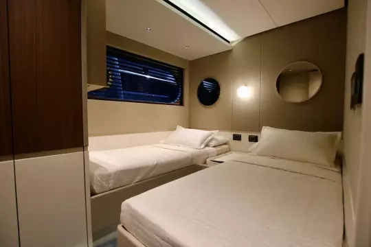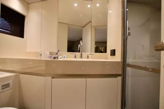 • Sliding door in master cabin separating washbasins area from the cabin (manually operated)