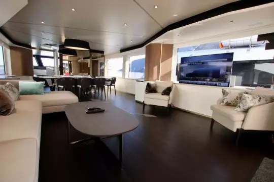 • WOOD FLOOR IN SALON, DINING AREA & CREW MESS