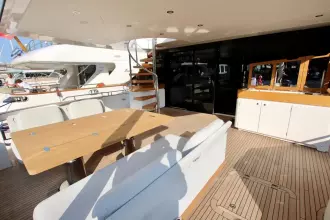• Cockpit table in teak (hi-lo electrically operated in lieu of std. fixed table)