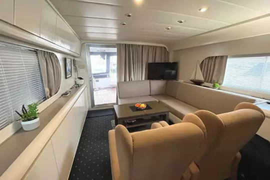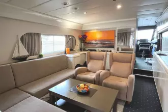 Inside you will find a spacious salon with a separate, comfortable dining area, a large fully equipped galley, 2 double cabins, 1 triple cabin, and 3 bathrooms.