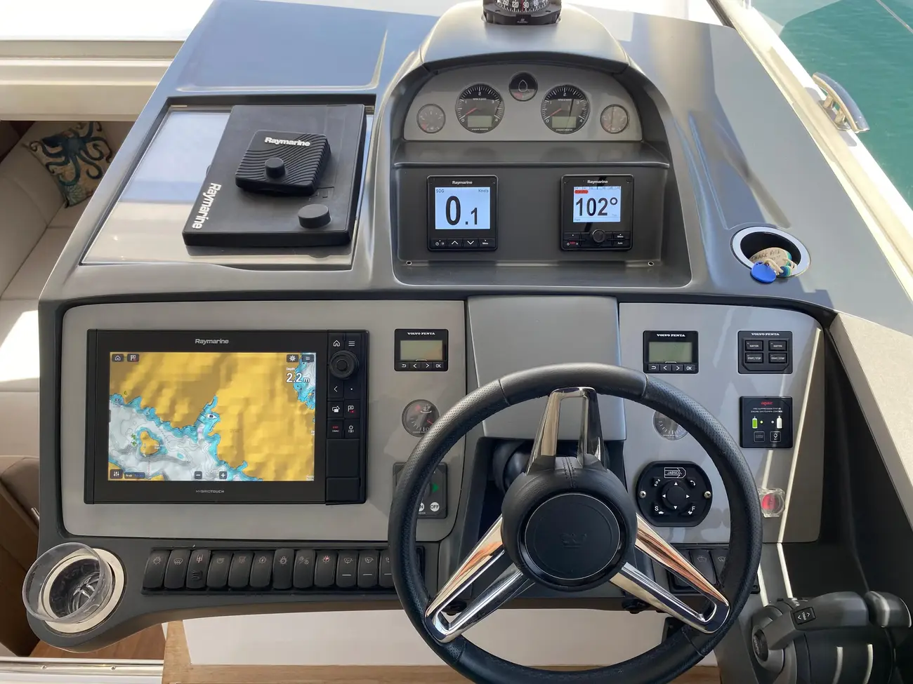 Introducing the stunning 2022 Princess V40 Sports Cruiser, a remarkable vessel that combines elegance with performance. With an impressive overall length of 12.5 meters, this boat is designed for those who appreciate both style and functionality. Crafted from durable fiberglass, the hull ensures a smooth and stable ride, perfect for cruising the open waters. Powered by twin Volvo D6-330 DP inboard engines, each delivering 330 kW, this cruiser offers a powerful and efficient performance, with only 117 hours of use. The V40 features two well-appointed cabins and a head, providing ample space for relaxation and comfort on board. Equipped with essential features, this vessel is ready for adventure. The Princess V40 is the ideal choice for those seeking a luxurious and enjoyable boating experience, making it a standout option in the world of sports cruisers.