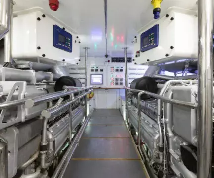 Powered by twin MTU 16V2000 M93 engines (2 x 2450 HP) with only 2,390 engine hours, 2 DETRA 5 Blades propellers - 2 ONAN 40KWA Generators - 1 ONAN 22.5 KWA Generator - TRAC Zerospeed stabilizers - BCS 85HP Bow thruster - BCS 45HP Stern thruster - TERN - HAMMAN Sewage - ALPHA LAVAL Fuel centrifugator - 2 IDROMAR 180 L/H Watermakers