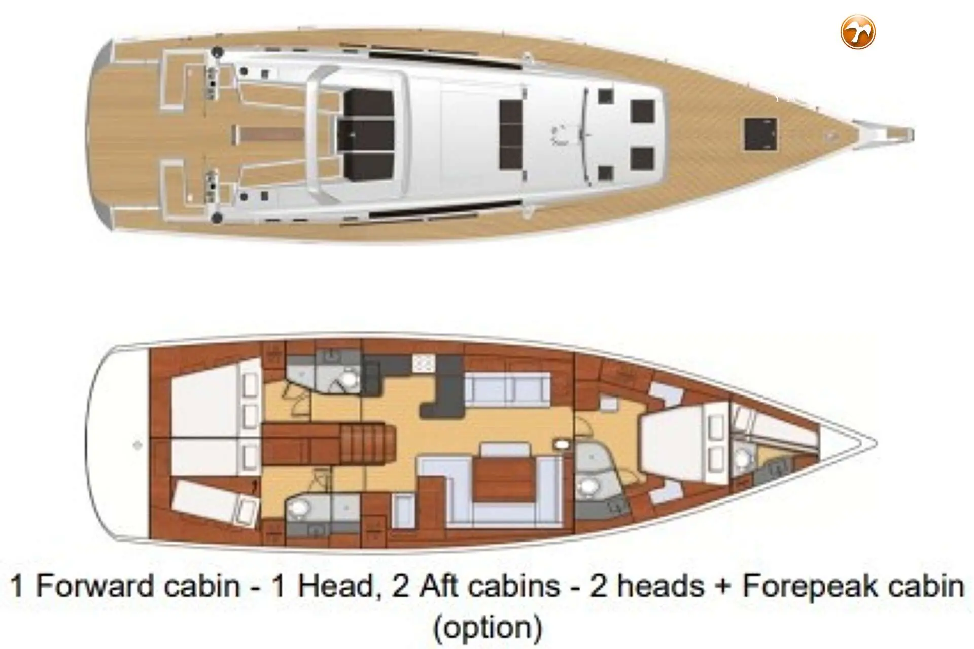 A well-equipped and well-maintained owner's version of this ocean-capable yacht which, if required, can be sailed short-handed owing to its open, uncluttered deck layout and furling cutter rig. The spacious interior with warm mahogany panelling will keep the owner and guests in luxury and on deck there are multiple, separate seating and lounging areas. The powered opening transom swim platform gives access to a locker big enough to store all your gear or even the tender.