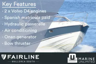 Fairline’s Targa 38 is excellently crafted and one of their best-selling models! This model has been looked after at a high quality; she is in excellent condition for her age with a full-service history available upon request! With a spacious cockpit layout allowing ample storage and seating for guests, the Targa 38 is perfect for sociable boating. Offered with a comprehensive inventory including reverse cycle air conditioning, 7kva Onan generator, hydraulic passerelle, bow thruster, Garmin navionics including radar, music system and much more. EU Tax Paid! Spanish Matricula Paid! Be quick to act.