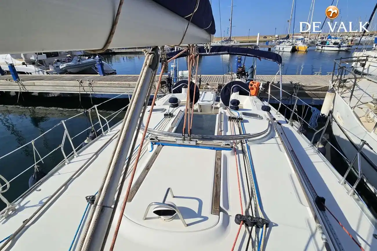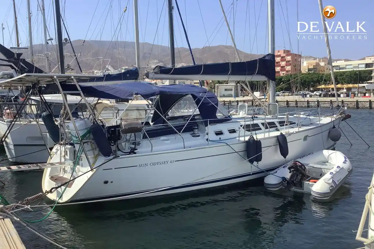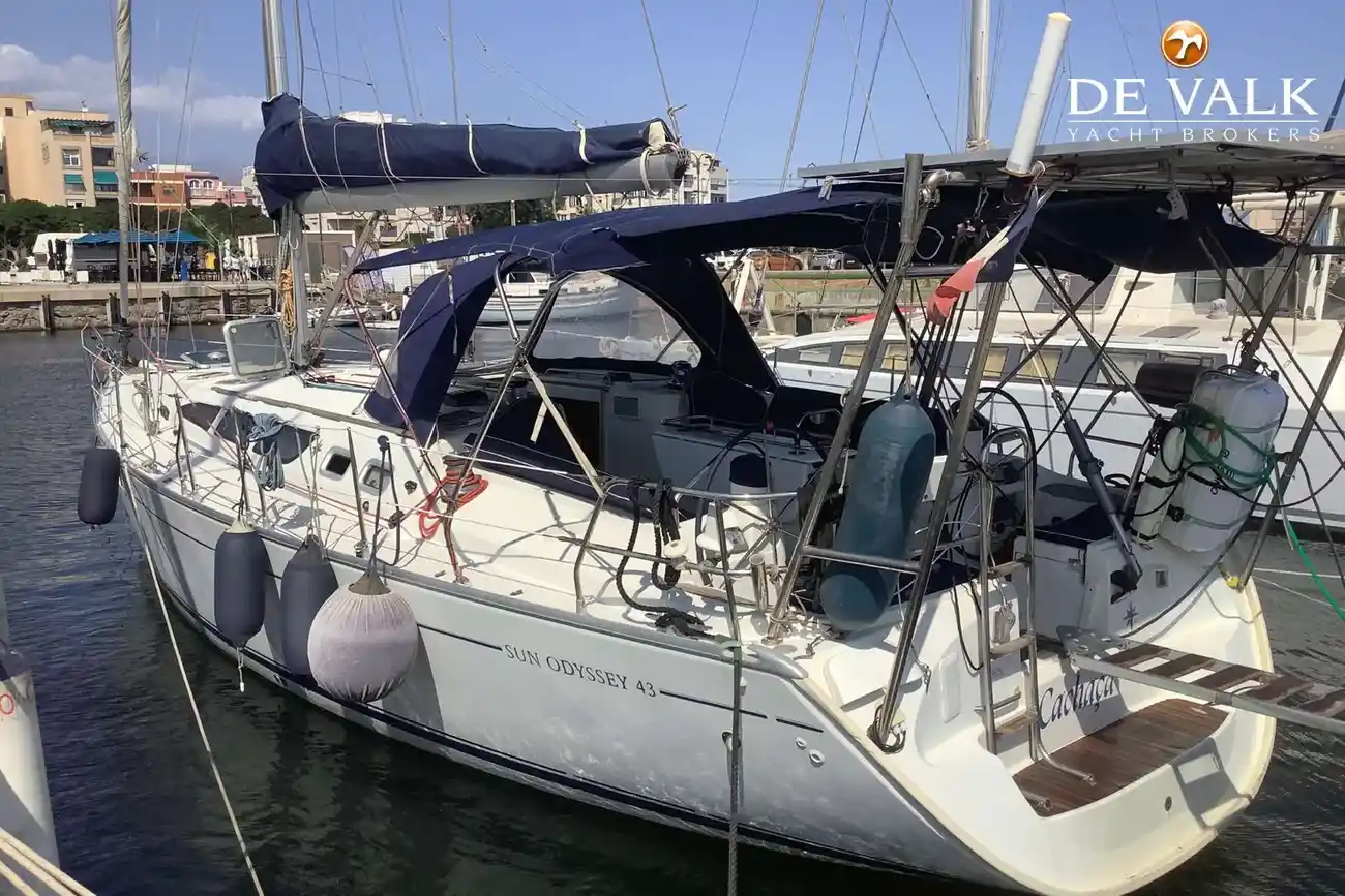 The Jeanneau Sun Odyssey 43 is a popular sailboat known for its comfortable interior, good sailing performance, and solid build quality. It's praised for its bright saloon and spacious cockpit. Designed with families and charter guests in mind. Its ingenious modular interior can be converted by the owner from two cabins to four; removable bulkheads in the forward and aft cabins fit into slots in the overhead. An L-shaped galley and U-shaped dinette, each to starboard, provide ample room for crew. Available in South Spain