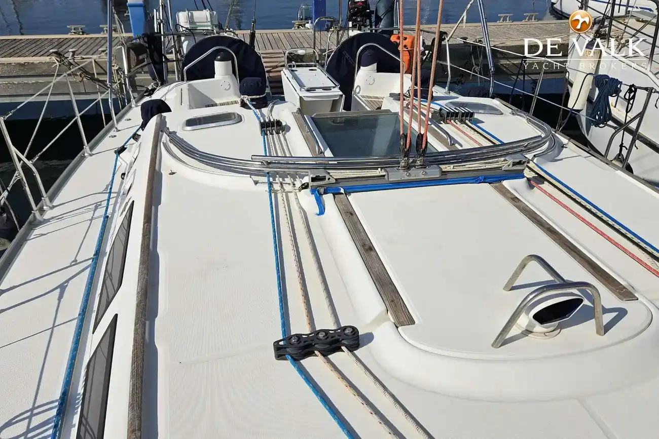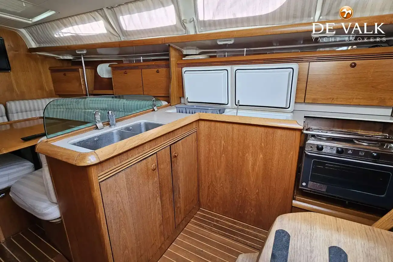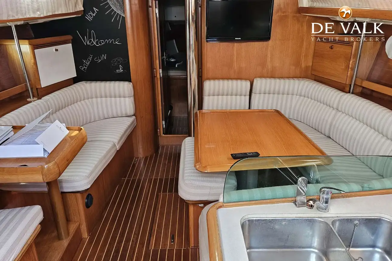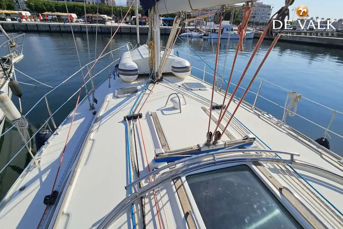 The Jeanneau Sun Odyssey 43 is a popular sailboat known for its comfortable interior, good sailing performance, and solid build quality. It's praised for its bright saloon and spacious cockpit. Designed with families and charter guests in mind. Its ingenious modular interior can be converted by the owner from two cabins to four; removable bulkheads in the forward and aft cabins fit into slots in the overhead. An L-shaped galley and U-shaped dinette, each to starboard, provide ample room for crew. Available in South Spain