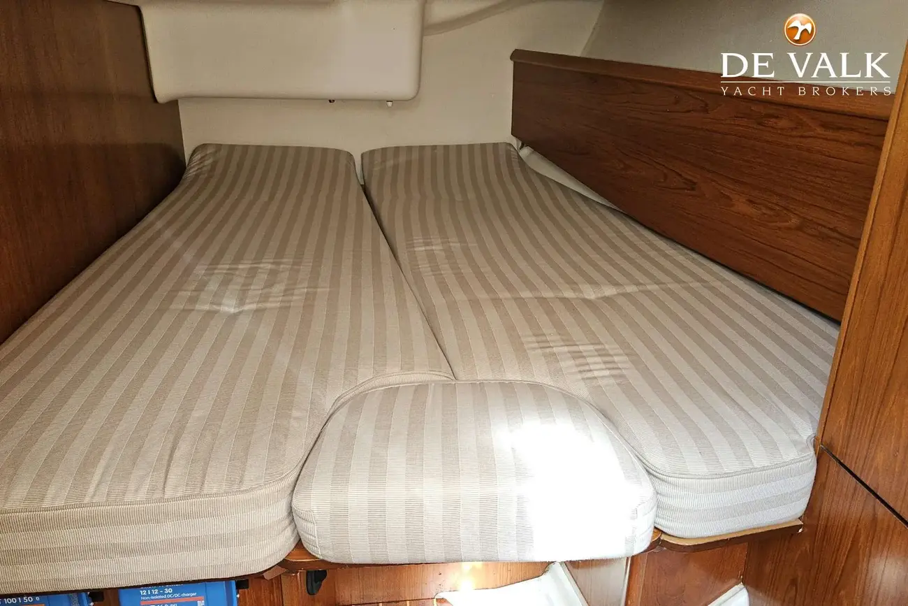 Its ingenious modular interior can be converted by the owner from two cabins to four; removable bulkheads in the forward and aft cabins fit into slots in the overhead. An L-shaped galley and U-shaped dinette, each to starboard, provide ample room for crew.