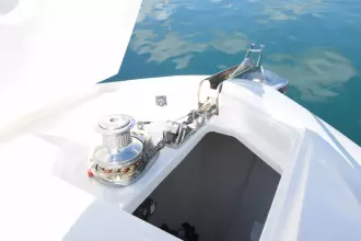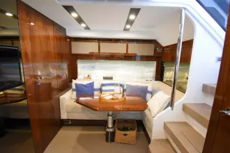 • Fwd guest cabin with twin single berths with conversion to double, access to day head / en-suite