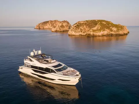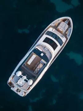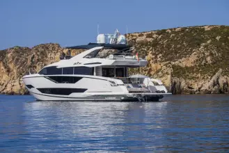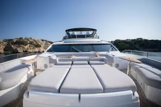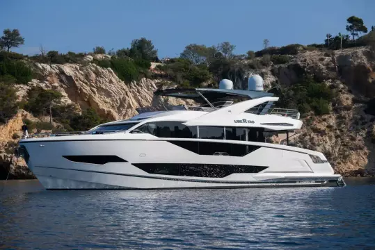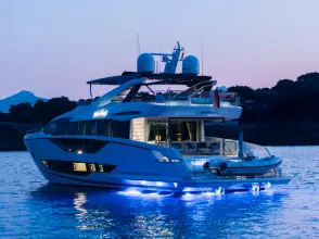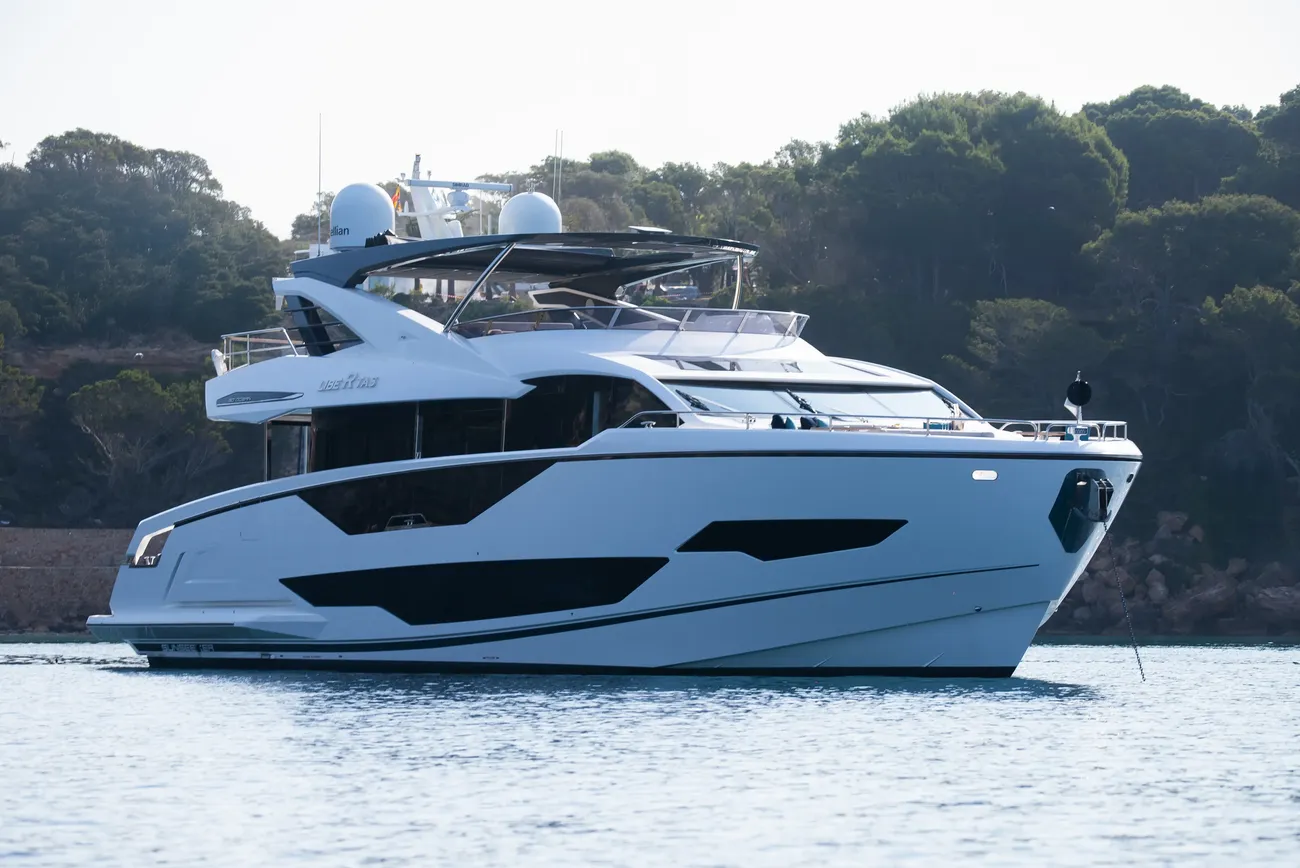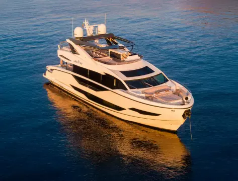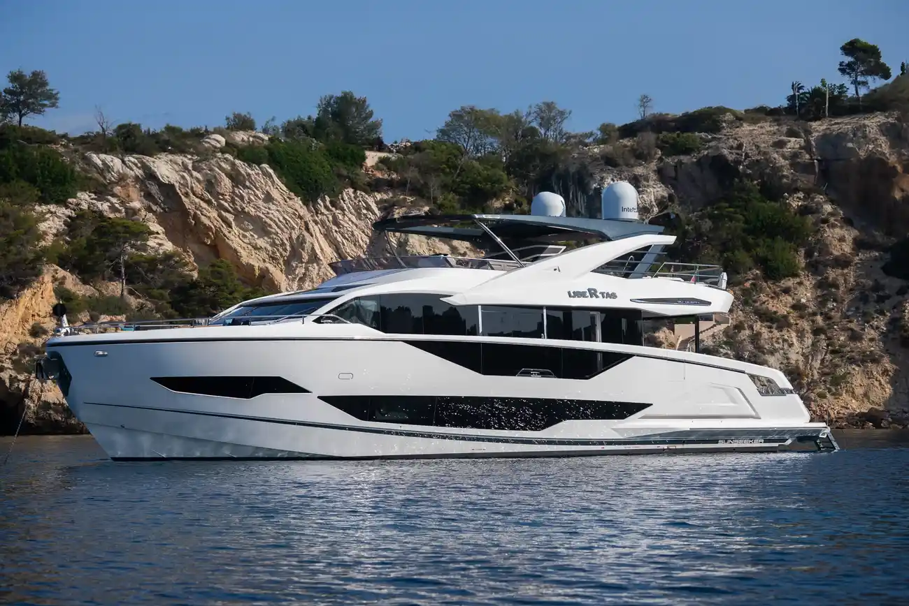 Libertas is a striking Sunseeker 90 Ocean, built in 2021 and delivered in 2022, available for sale and located in Mallorca. Built to the custom specification of an experienced owner, it offers a rare opportunity to access one of Sunseeker's most innovative models with a complete and highly upgraded inventory. Winner of the 2023 Motor Boat Award for Best Custom Yacht, the 90 Ocean stands out for its volume and design innovation, offering around 20% more space than other yachts in this class. Libertas is one of the few examples fitted with the larger MAN V12-2000 engines and has been customized to suit both private use and charter potential.