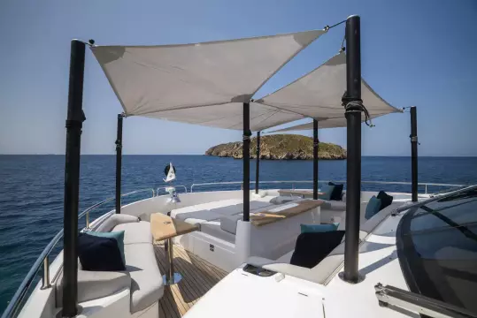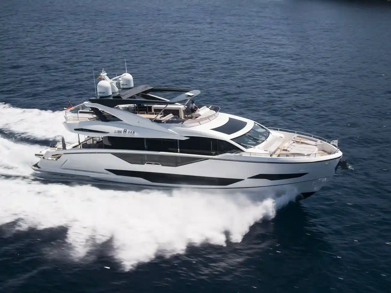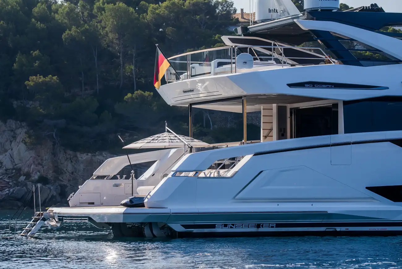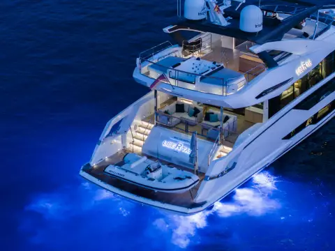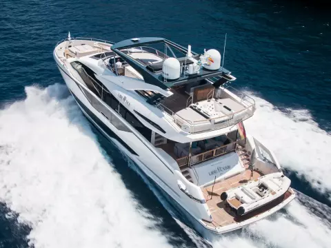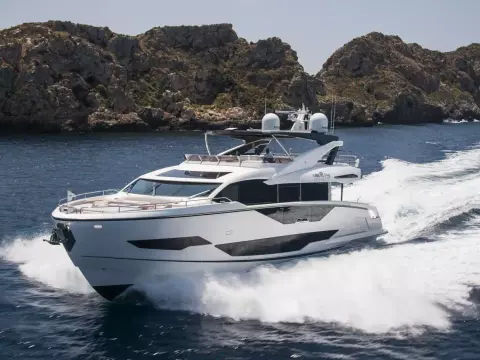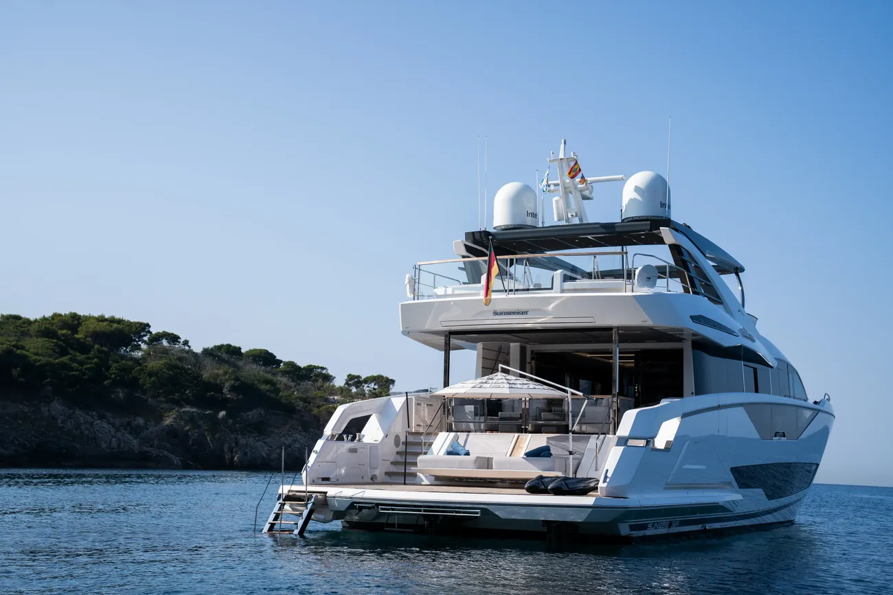 Libertas is a striking Sunseeker 90 Ocean, built in 2021 and delivered in 2022, available for sale and located in Mallorca. Built to the custom specification of an experienced owner, it offers a rare opportunity to access one of Sunseeker's most innovative models with a complete and highly upgraded inventory. Winner of the 2023 Motor Boat Award for Best Custom Yacht, the 90 Ocean stands out for its volume and design innovation, offering around 20% more space than other yachts in this class. Libertas is one of the few examples fitted with the larger MAN V12-2000 engines and has been customized to suit both private use and charter potential.
