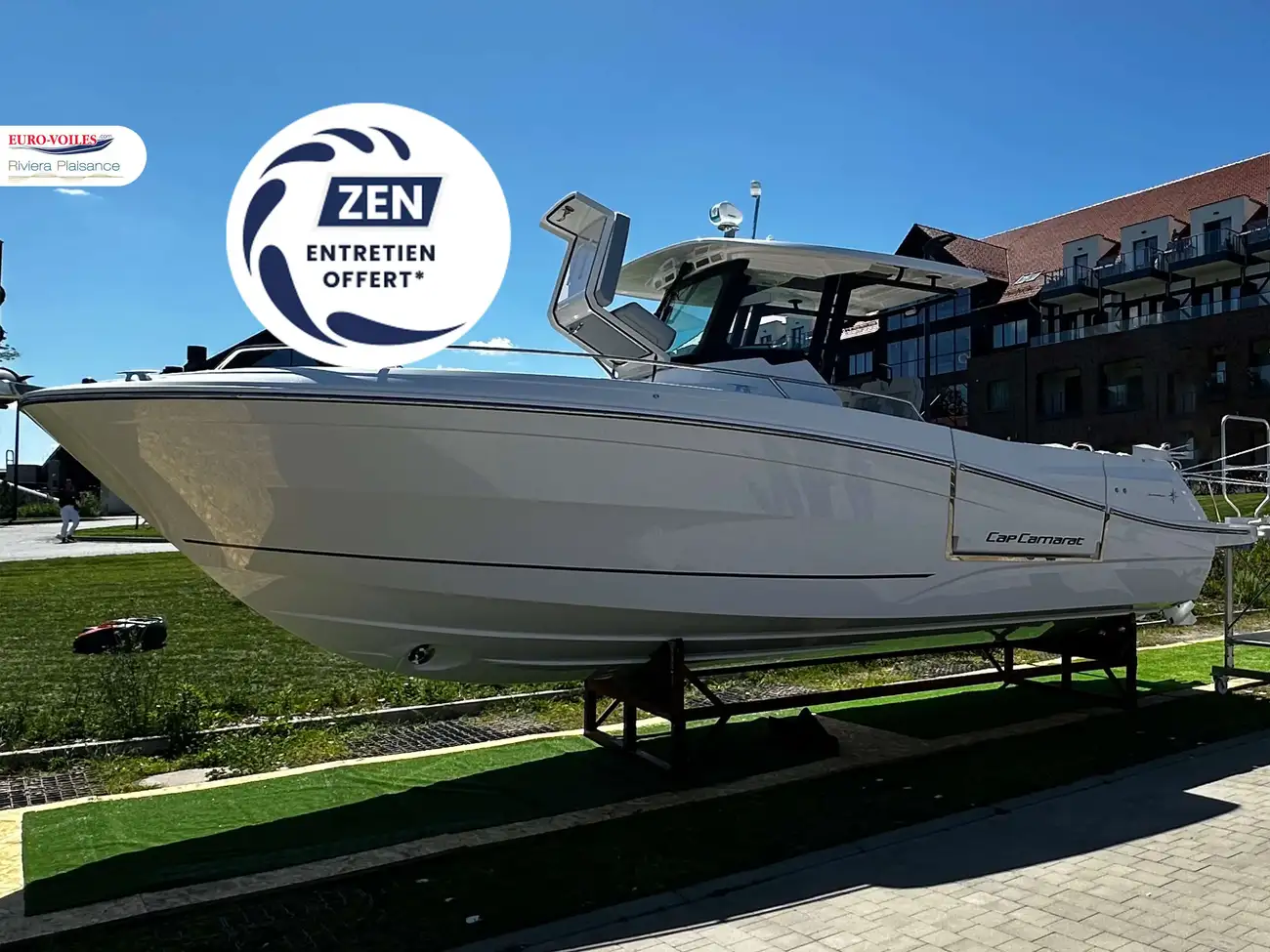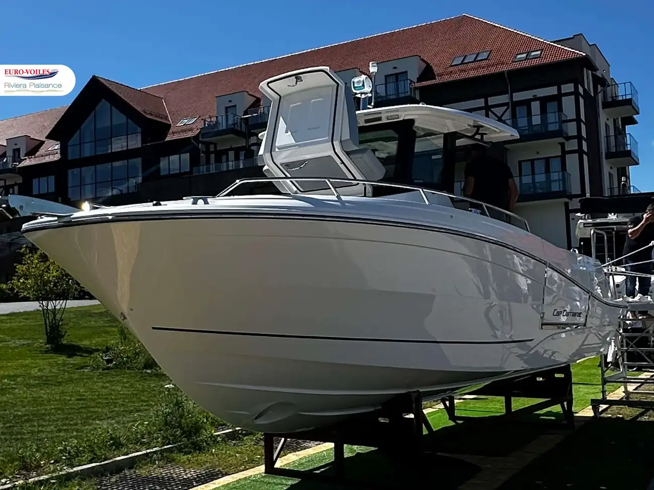 NEW 2026 - Jeanneau Cap Camarat 9.0 CC series 2 Discover a world preview with Euro-Voiles Riviera Plaisance HD Marine of the new Jeanneau Cap Camarat 9.0 CC model. This iconic model is back with a bold new design, redesigned features and a magnificent terrace overlooking the sea! Make an appointment for a world preview! Special offer, visit, test drive. Make an appointment. Jeanneau strikes hard with this new engine version designed for performance, comfort... and style. Discover a cleverly redesigned cockpit featuring an elegant side deck, a fully equipped galley and a spacious, user-friendly cockpit layout. Up front, the improved bow cockpit features fold-down backrests, an optimized layout, Fusion USB sockets and audio remote control, and an all-new exclusive marine foam deck covering. Innovative new interior access, redesigned to facilitate life on board and improve fluidity between spaces. Discover the options & Packs available: Up to 2 x 250 HP Yamaha, Suzuki or Mercury engines, with optional joystick. Comfort, electronics, ambience and audio packages, or the "Pure Fishing" package. The new Cap Camarat 9.0 CC combines the versatility of an open and the comfort of a day-cruiser, with full equipment and meticulous design. An absolute must-see! Be among the first to discover it at the Jeanneau sea trials in Beaulieu from August 22 to 24, 2025, and at the Cannes Yachting Festival 2025 in September. Make an appointment and contact us to receive your invitations! Berths, financing and rental management solutions. Take advantage of our exclusive ZEN offer, with 1 year's maintenance free*. Entrust us with your boat project! Bow thruster Trim tabs Anchor Electric Windlass Bilge Pump Safety equipment Antifouling Anti-osmosis Electrical system 220 V Electrical system 12 V Charger Alternator Service batteries Engine batteries GPS Chart Plotter Fishfinder Swimming platform Swimming ladder Cockpit shower Cockpit table Rod holders Foredeck suncushion Cockpit sun bed Cockpit cushions Sprayhood