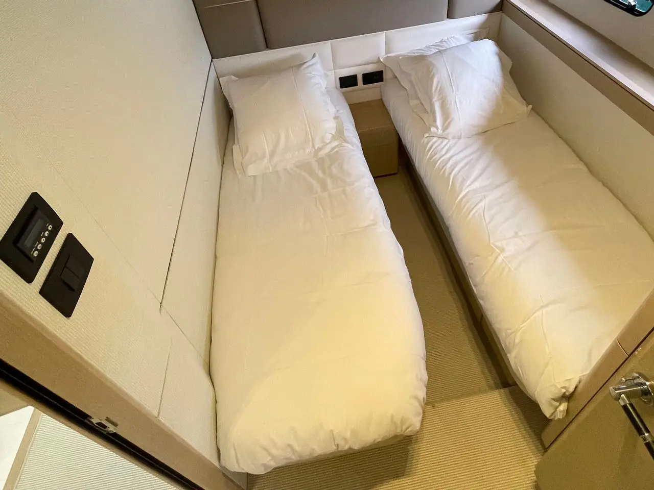 This yacht is equipped with two powerful engines that will allow you to sail in total serenity, whether you want to explore exotic destinations or simply enjoy a day at sea. Its high-performance propulsion system guarantees exceptional cruising speed and unrivalled manoeuvrability.