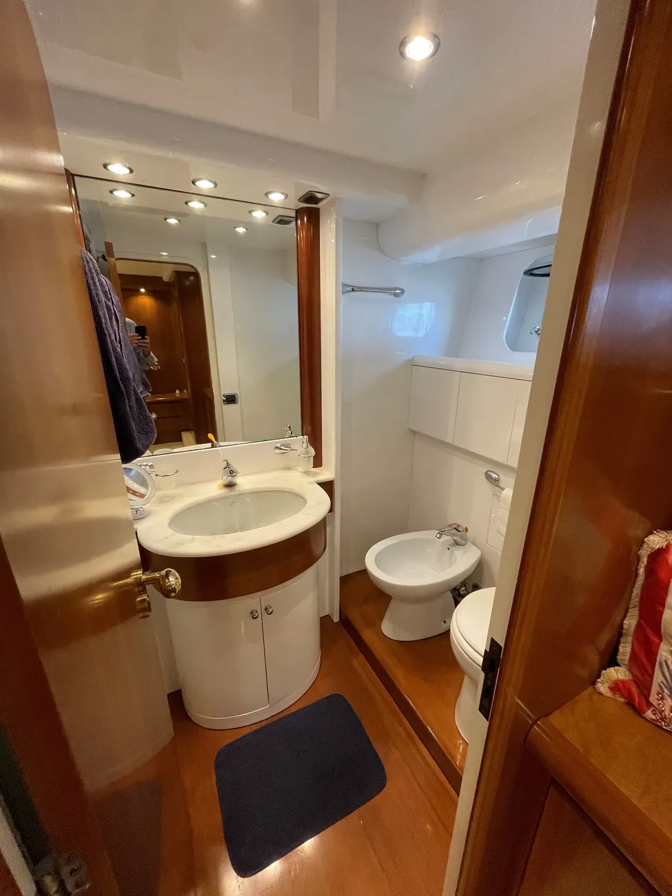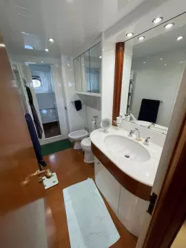 Full-beam Master cabin aft with dressing room and en-suite bathroom equipped with a bidet.