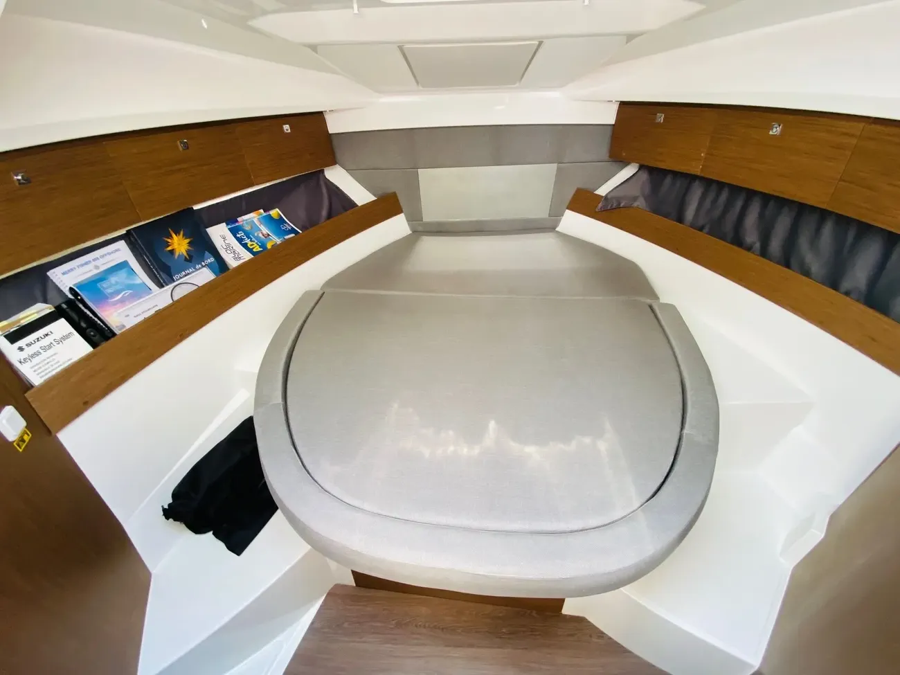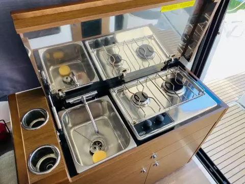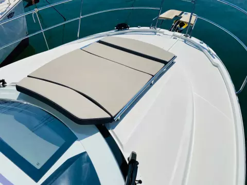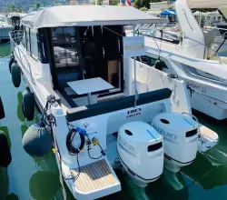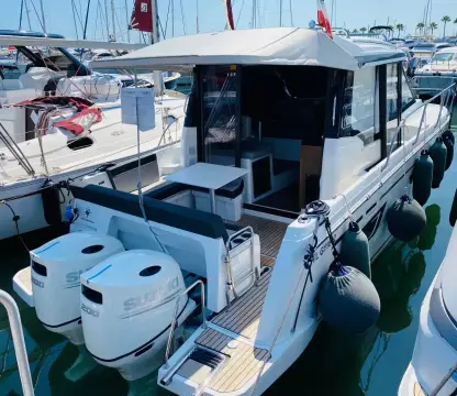 Merry Fisher 895 – The benchmark for family cruising Whether for a day trip or a week-long cruise, the Merry Fisher 895 is the ideal family boat to explore the coastline in comfort. This owner’s boat is in exceptional condition with only 280 engine hours. Powered by twin Suzuki DF 200 APX 200 hp engines (only 280 hours), fully serviced and antifouled for the 2024 season, the boat is available immediately. Full cruising equipment includes: Première finish with electric windlass Lenco electric trim tabs 60L refrigerator + additional battery Comfort pack with convertible double berth in the saloon Bow thruster Shore power connection Garmin 925V electronics pack Fusion Audio pack Garmin VHF U-shaped cockpit saloon with table and sunpad Cockpit sun awning Wooden swim platforms Cockpit enclosure Forward sunpad with handrail Deck floodlights Overhead storage in forward cabin Interior curtains Teak cockpit floor and starboard side deck Tropical air conditioning Solar panels on the roof A rare opportunity in the region, this boat is also available with a berth. Viewings by appointment only. Call me now at +to arrange a visit! RIVIERA PLAISANCE – Euro-Voiles Group Official dealer for JEANNEAU, PRESTIGE, MONTECARLO YACHTS 55 staff at your service for over 55 years Offices in the Alpes-Maritimes: Marina Baie des Anges, Antibes, Golfe Juan. Entrust us with your boating project – we will be delighted to listen and advise you so that every moment on board is pure pleasure.Bow thruster SIDE POWER Trim tabs LENCO Anchor Electric Windlass MOUILLAGE 40 M Bilge Pump Safety equipment 6 PAX Antifouling 2023 VHF GARMIN 215 Convertible saloon DANS TIMONERIE Air conditioning 220 V Heating 220V Water Heaters Electric toilet 2021 Refrigerator Cooker GAZ Shore power Electrical system 220 V Electrical system 12 V Charger Alternator Service batteries 3 Engine batteries 1 Inverter Solar Panel TIMONERIE Log-speedometer Compass GPS GARMIN PACK 2021 Chart Sounder GARMIN Fishfinder Central navigation GARMIN Computer SUZUKI MARINE Navigation software Gangway 2M AVEC MAIN COURANTE Cockpit teak Swimming platform Swimming ladder Cockpit shower Cockpit table Cockpit lighting Rod holders Foredeck suncushion Cockpit sun bed Cockpit cushions Bimini top Camping awning Cockpit Aft Closing Sun canopy Hi-Fi FUSION