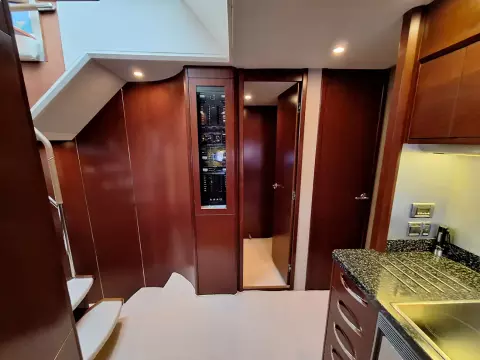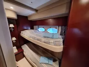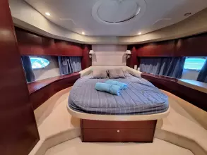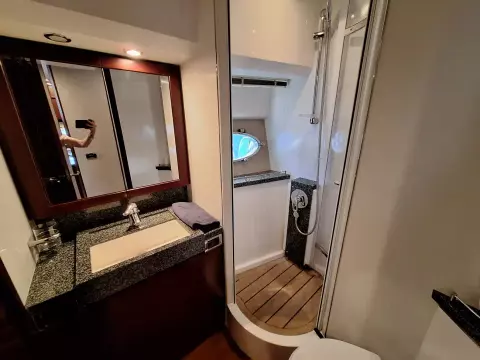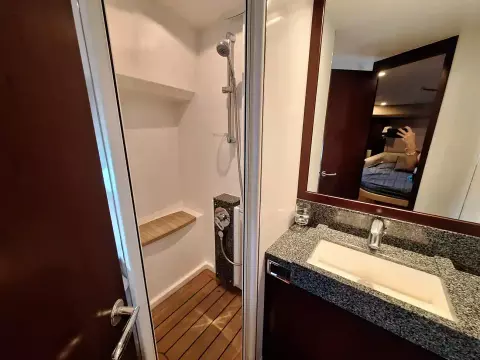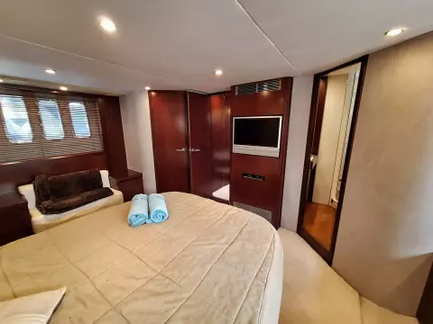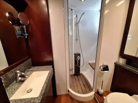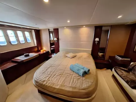 This beautiful yacht features 3 spacious cabins, each with its own bathroom, as well as a crew cabin located aft with a large storage area and direct access to the engine room. The lower deck was fully refurbished in February 2025, including new ceilings and carpets throughout.