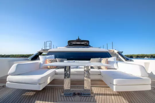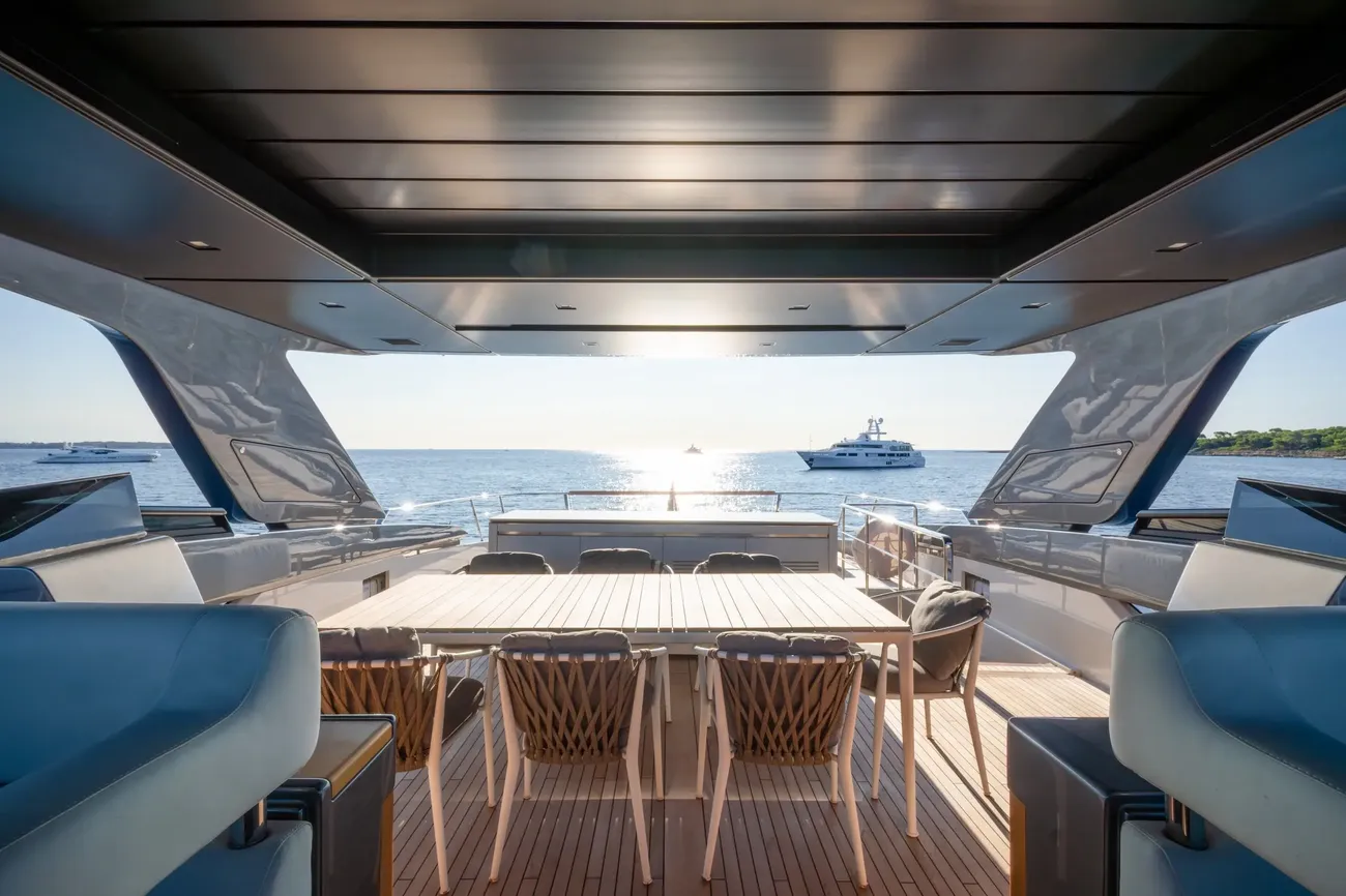 - Sun awning for the stern area of the fly behind the hard top