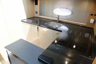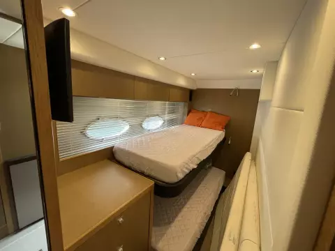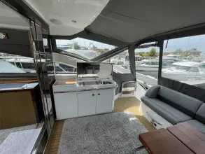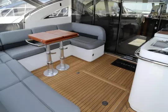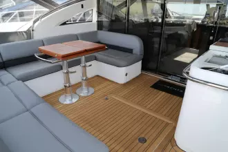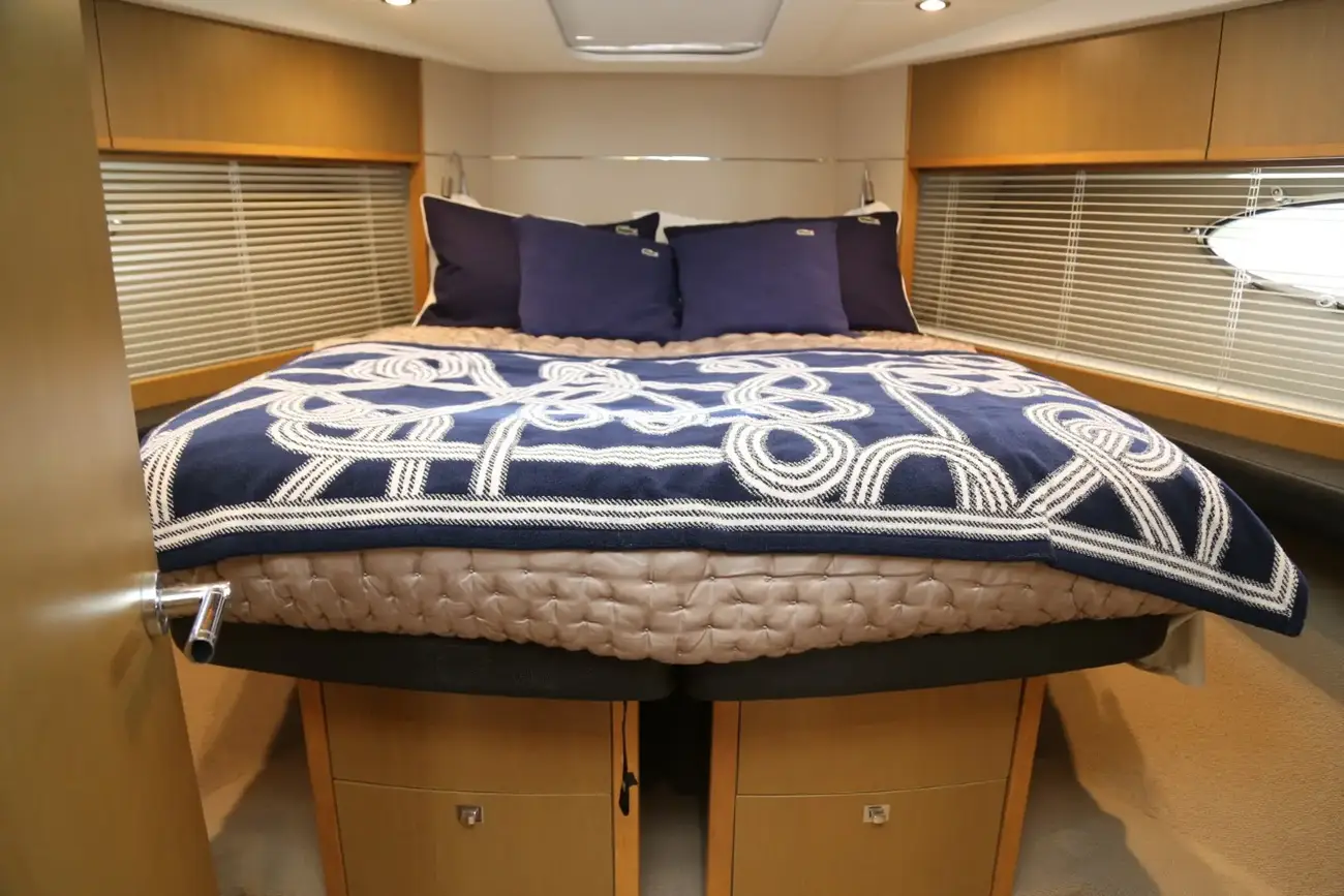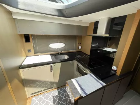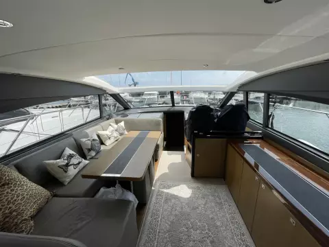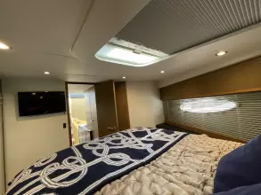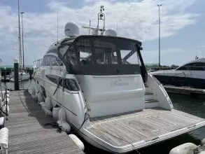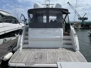 This premium British-built sports cruiser measures over 16.5 meters in length and boasts a thoughtfully designed 3-cabin layout. With its electric opening sunroof, hi-lo hydraulic bathing platform, and elegant, light-filled interior, "Rocco" combines practical luxury with bold, modern styling. Recently upgraded with a new cockpit canopy and windshield cover (2025), this vessel is ready for a discerning new owner to cruise in comfort and style.