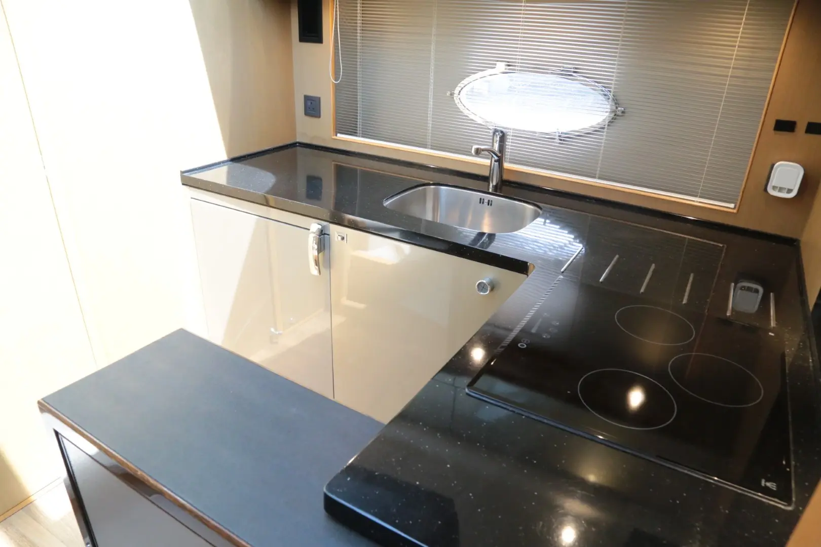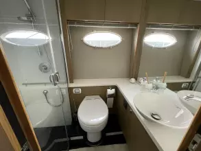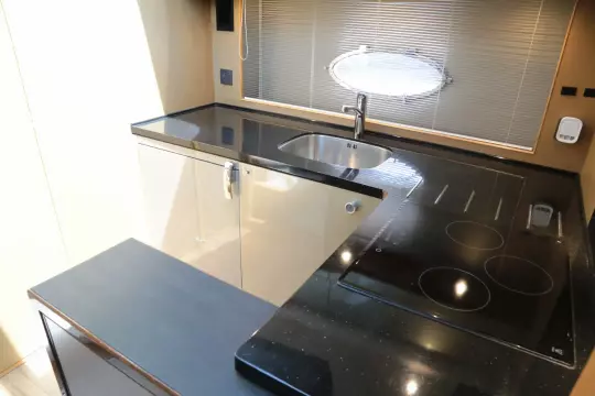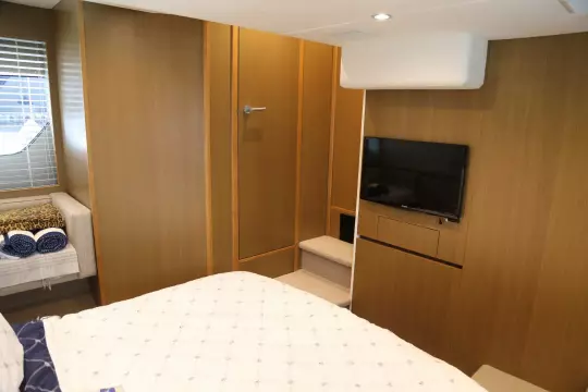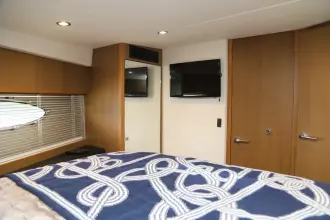 - Premium Interior & Accommodation: Features 3 cabins (including owner’s stateroom with en-suite), saloon with electric sunroof, dishwasher, flatscreen TVs, and plush furnishings throughout.