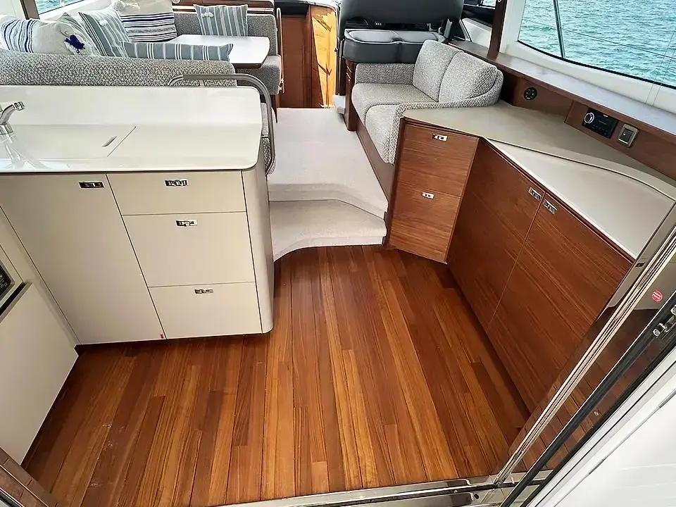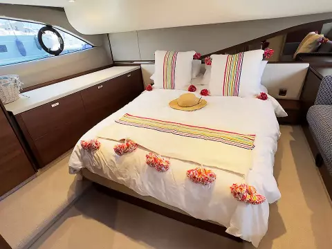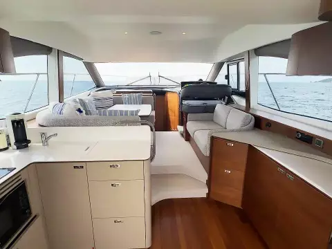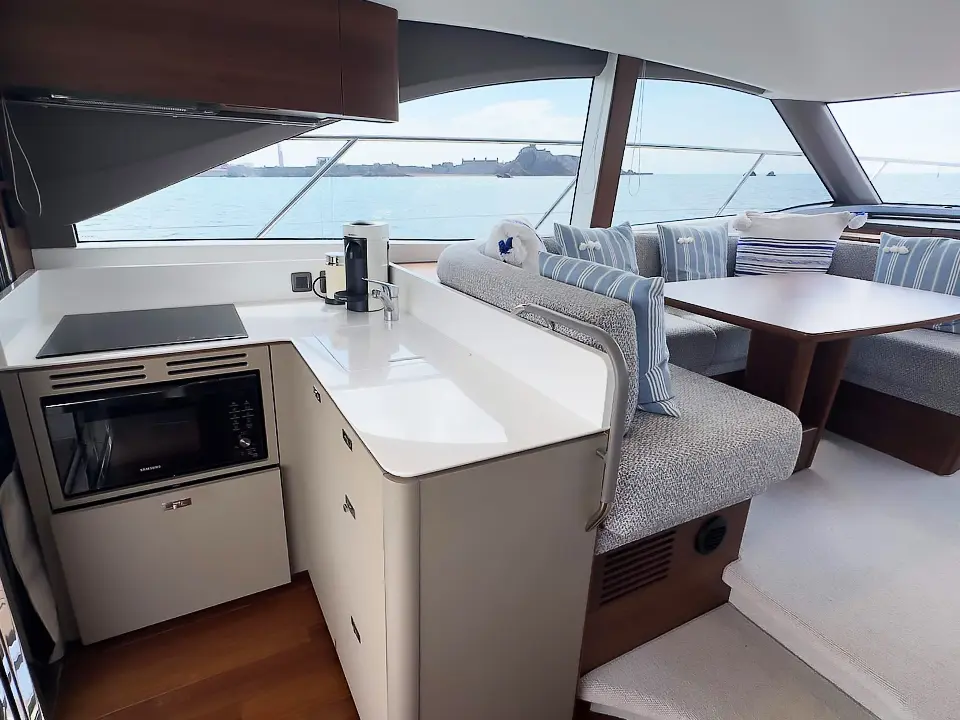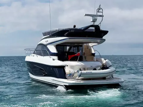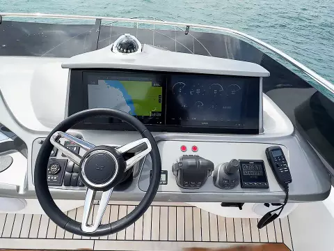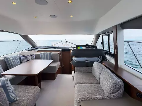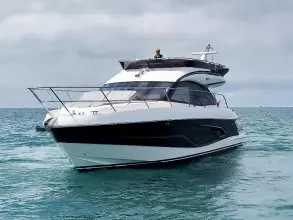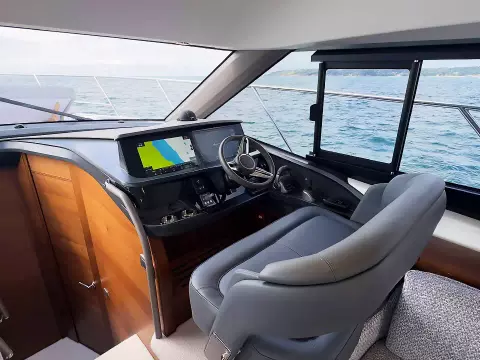 Evolved from the Princess F55 and F62, the Princess F45 encompasses strong, continuous feature lines with a dynamic, contemporary interior; there is a confident character about this yacht which projects the flybridge range into a new era. The moment you step on board, the flexible spacious living space is clearly apparent in her deceptively roomy cockpit area designed for socialising with a seamless connection to the galley. Panoramic windows flood the main deck saloon with natural light allowing you and your guests to enjoy the view.
