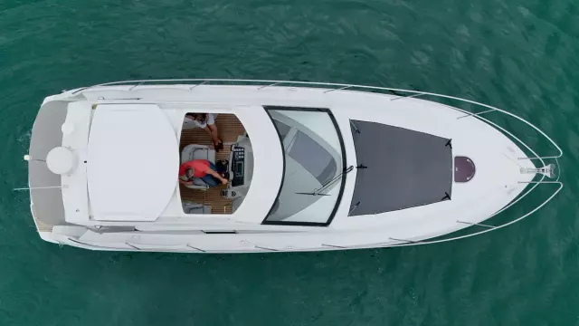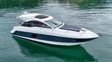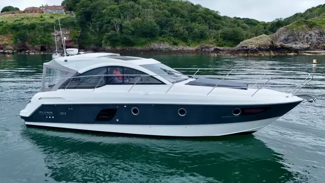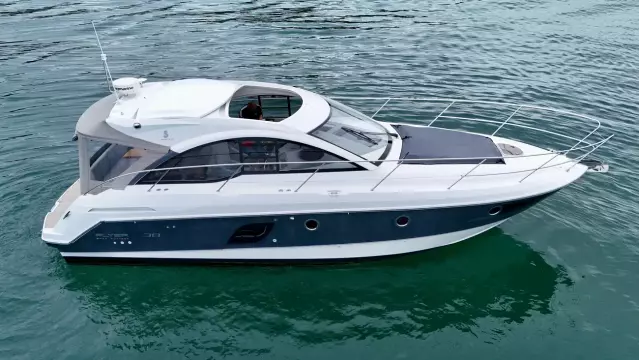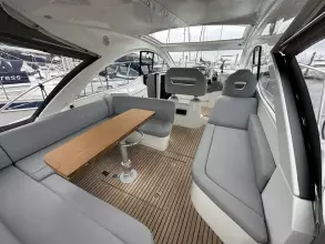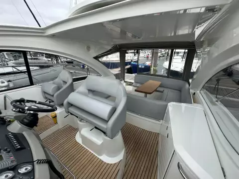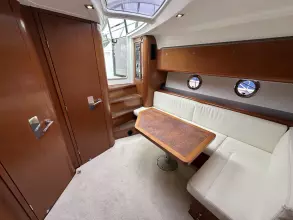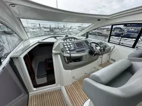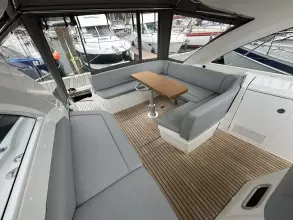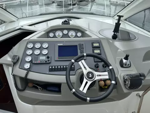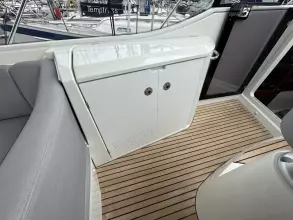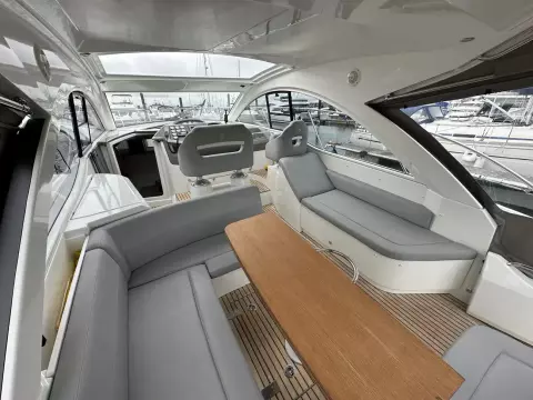 Powered by twin Volvo Penta D4 diesel engines paired with Volvo Penta’s sought-after joystick control system, she offers outstanding performance and stress-free handling in the marina. For those wanting extended time aboard or extra comfort while at anchor, the specification also includes a Cummins Onan generator, air conditioning below deck, Webasto heating, and an electric sliding hardtop to transform the saloon into an open, sun-filled cockpit at the push of a button!