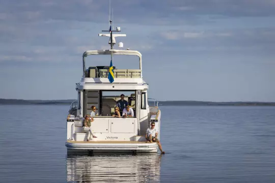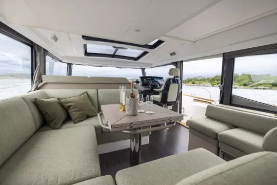Powered by twin Volvo Penta IPS650 engines, this boat delivers smooth, efficient performance with impressive manoeuvrability. Four 600mm interceptors with automatic trim, list, and coordinated turn functions ensure a stable and responsive ride. Docking is made effortless thanks to the Evision 170 proportional bow thruster, while onboard comfort is maintained by two Eberspächer D6 diesel heaters - ideal for extended cruising in cooler conditions.