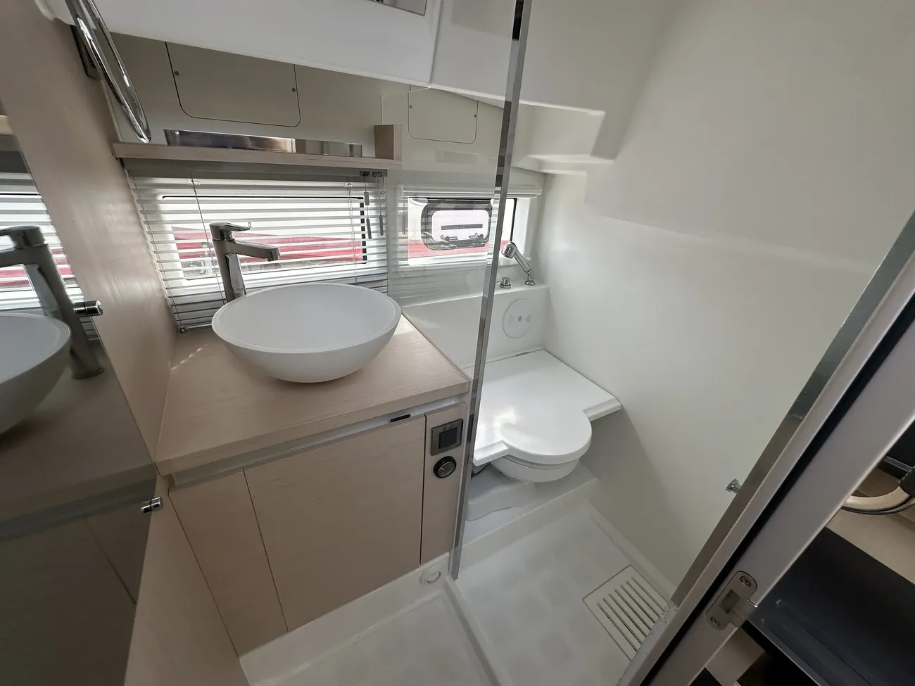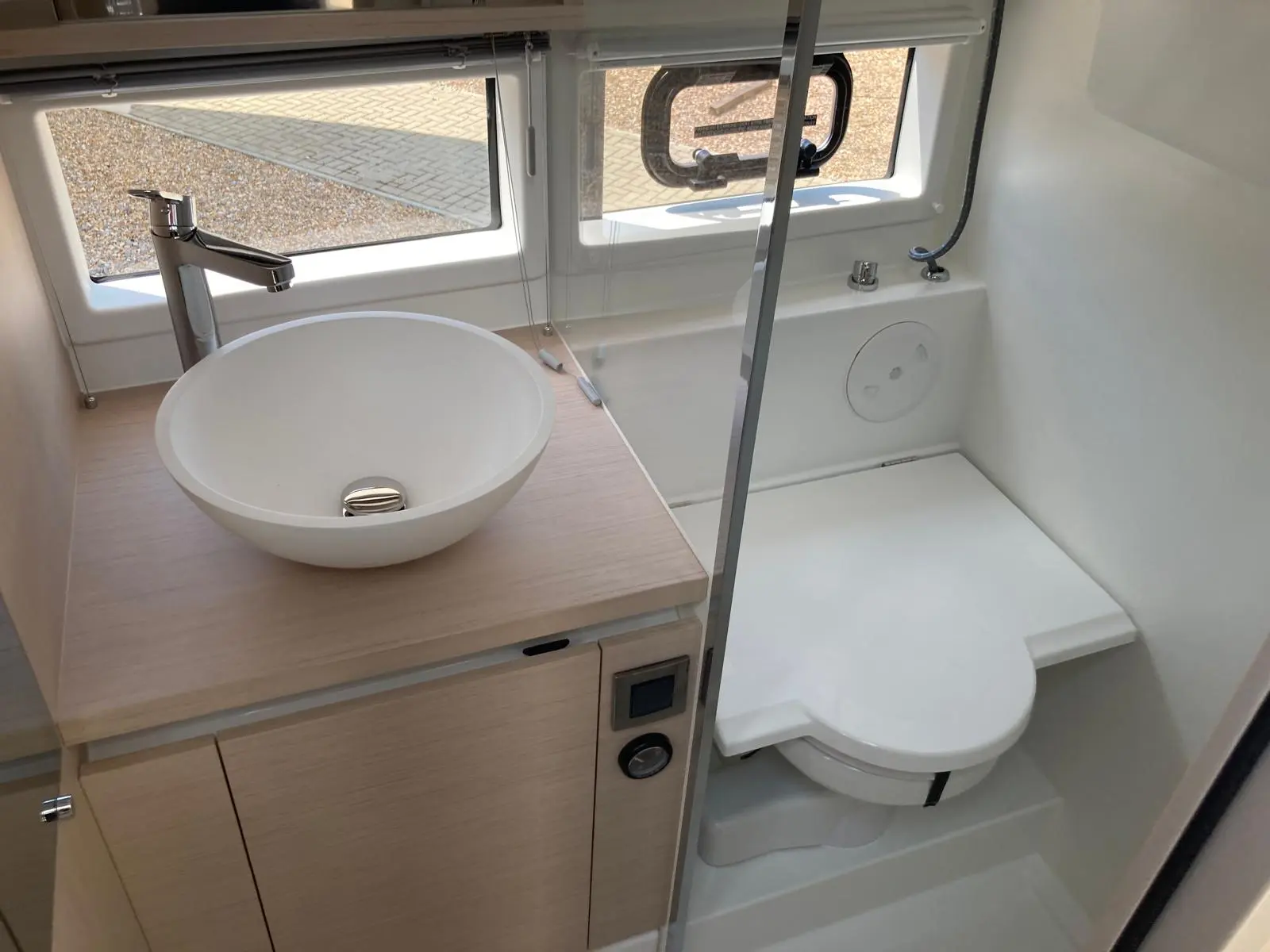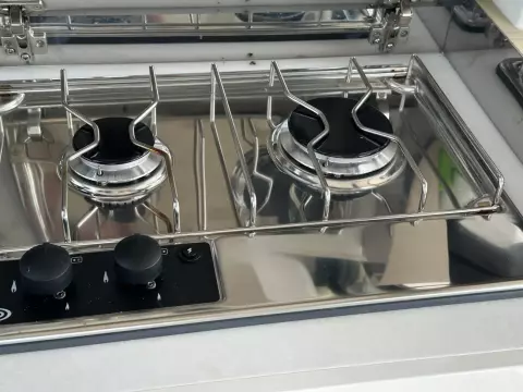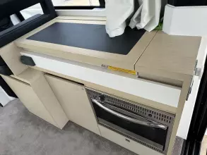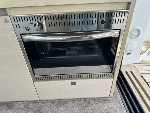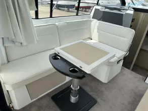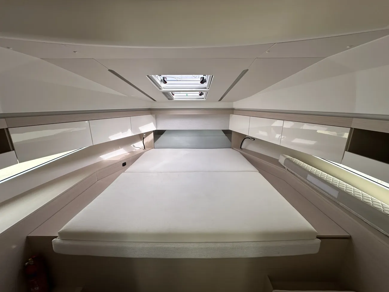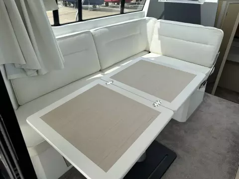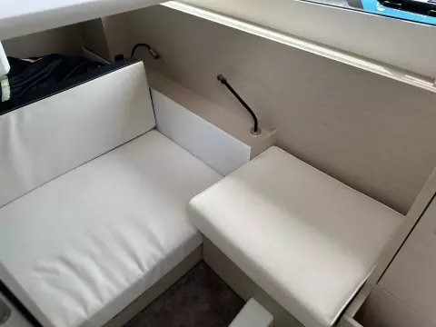 This boat offers versatility with a bench seat that converts into an L-shaped lounge in the saloon. Both the guest and owner's cabins are nearly identical in size, ensuring comfort for everyone on board.