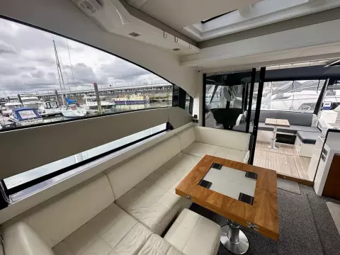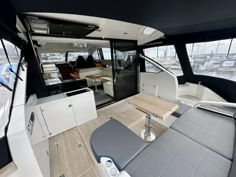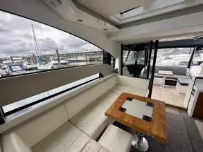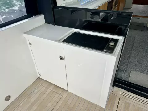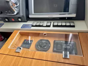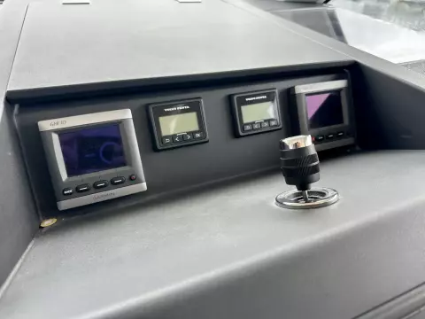 This particular Targa 50 GT boasts an exceptional specification, designed to enhance comfort and make life onboard effortless. Twin Eberspacher heating systems ensure all cabins stay cosy throughout the seasons, while the fully electric sliding roof lets you transition seamlessly from enclosed to open-air cruising at the touch of a button. A hydraulic tender lift system adds ease to launching and retrieving your tender, and the yacht controller with joystick control offers stress-free close-quarters handling.