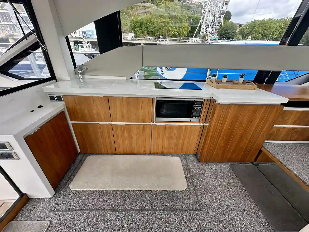 Navigation is a breeze thanks to high-end Garmin equipment, and a powerful generator ensures all your onboard systems can run smoothly whether you're at sea or anchored in a quiet bay. The sound system, a Bose surround setup, delivers crisp audio throughout, creating the perfect atmosphere wherever you are on board. Other standout features include an ultra stainless steel anchor and chain, hot and cold water system, underwater lights, and a thoughtfully converted crew cabin which now serves as practical storage space—ideal for longer stays or water toys!