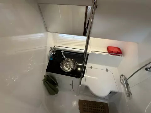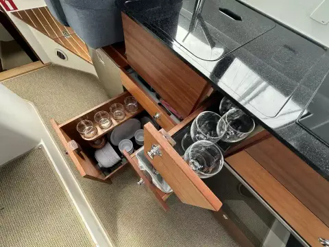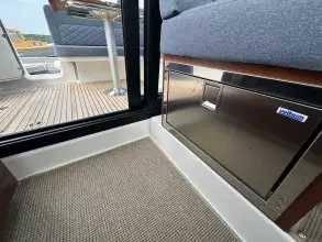 One of the defining characteristics of the Nimbus 305 Coupé is its expertly crafted hull, which has been meticulously developed and optimized for a wide speed range, from 0 to 22 knots. This hull is designed to accommodate smaller engines, such as the Volvo Penta D3 ensuring a smooth ride regardless of the chosen speed. Thanks to its hydrodynamic shape, this boat has no planing threshold, allowing for a comfortable and efficient cruising experience.