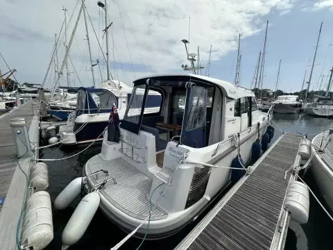 Introducing the Nimbus 305 Coupé, a remarkable powerboat that seamlessly combines sturdy, smart functionality with an elegant design. This model is specifically crafted for families, bon vivants, and avid seafarers, ensuring a delightful experience on the water. The Nimbus 305 Coupé stands out not only for its aesthetic appeal but also for its innovative features, particularly below deck, where numerous improvements and practical solutions are implemented to maximize onboard comfort.
