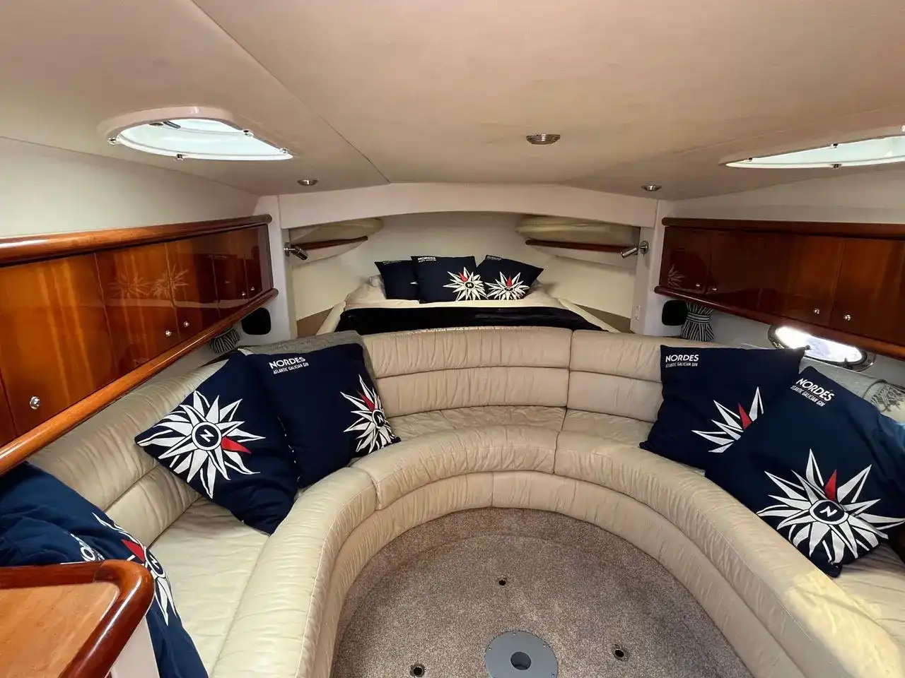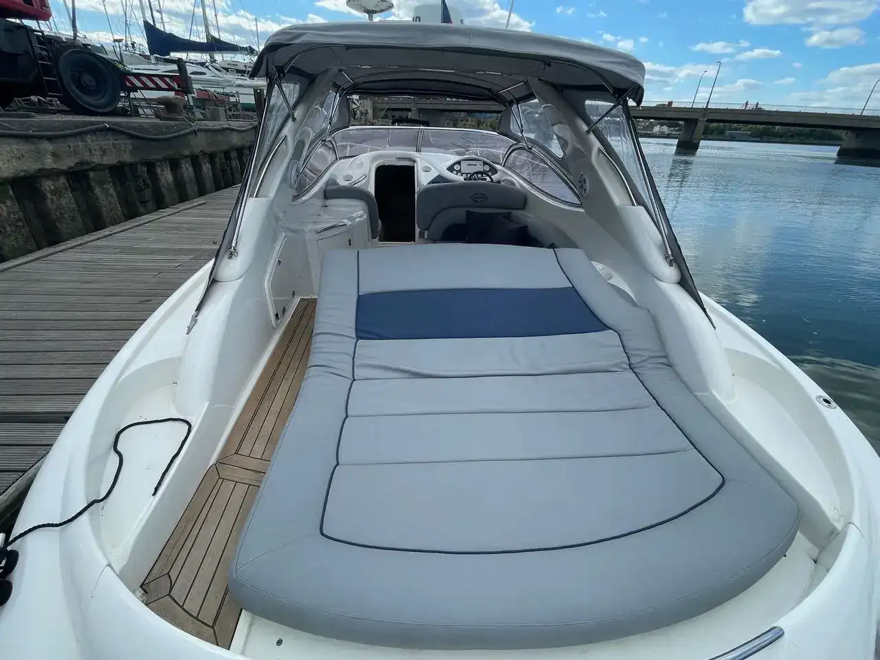 On deck, you’ll find a spacious open cockpit with a clever table design that folds away behind the main seating, and a large sunpad aft. The perfect day boat!