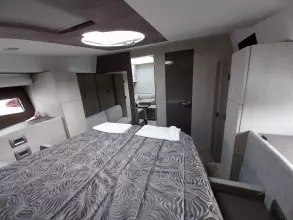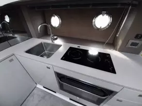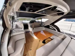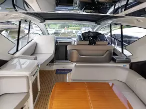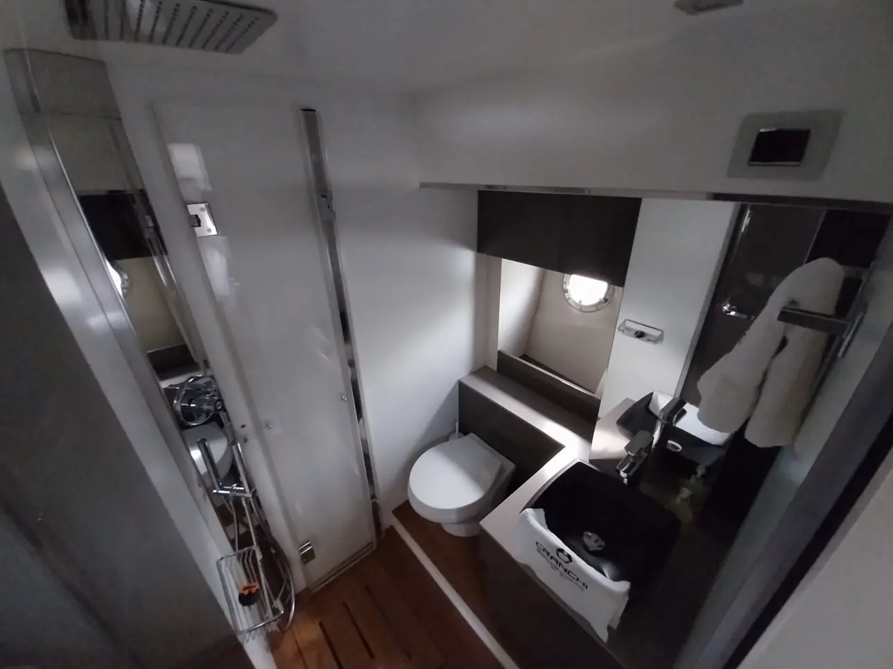 No matter which angle you view the Cranchi M44 HT it is a real head turner. Its extended hardtop flows up from the deck in one continuous sweep, sheltering the helm and dinette underneath a large electric opening roof while keeping the accommodation completely open to the aft end of the craft. Below decks is a luxurious centre saloon with galley to port with large forward double berth and an aft cabin for up to 3 people.