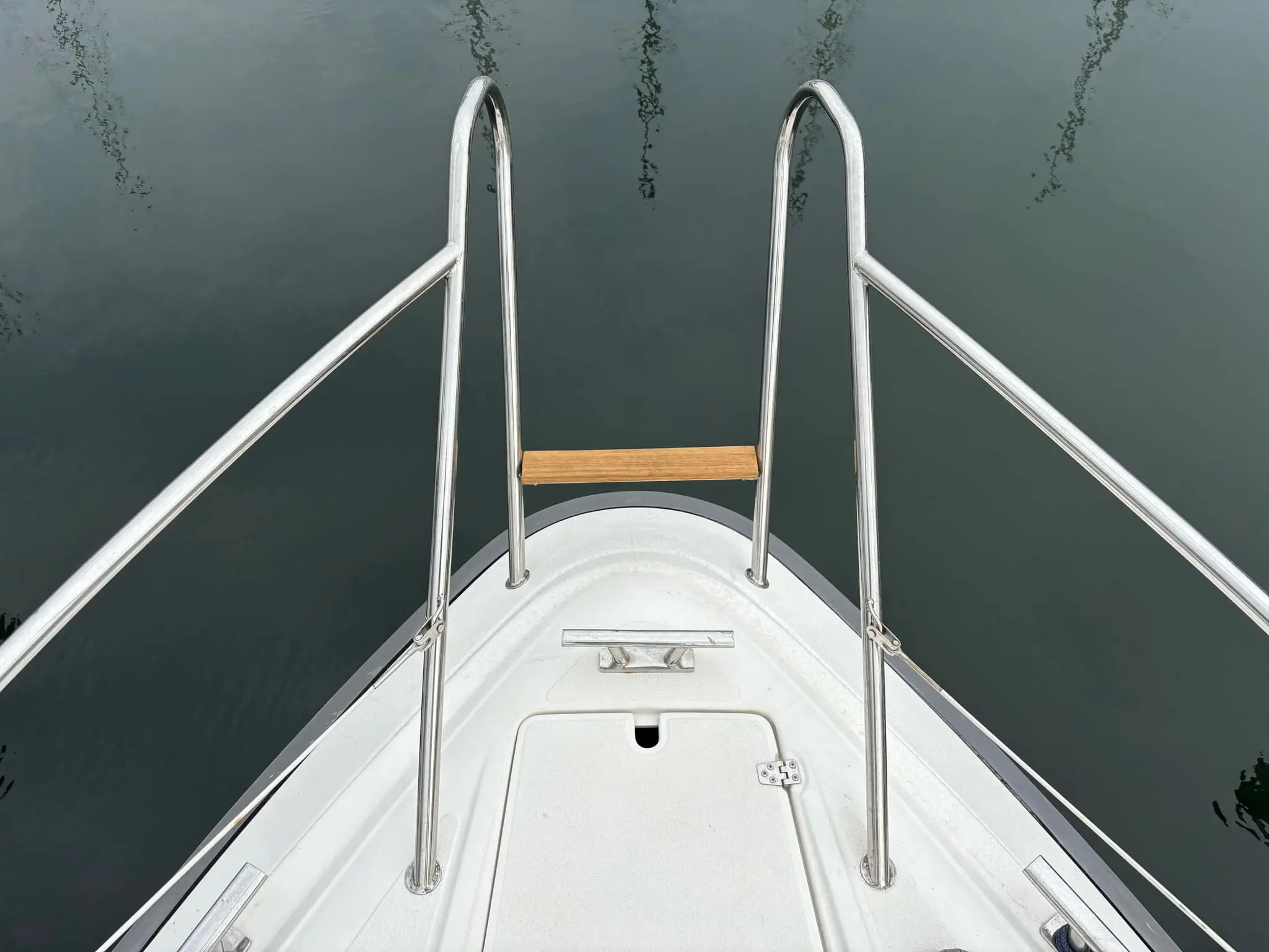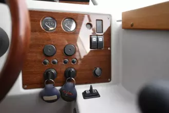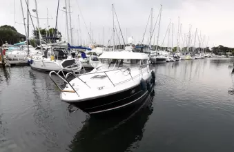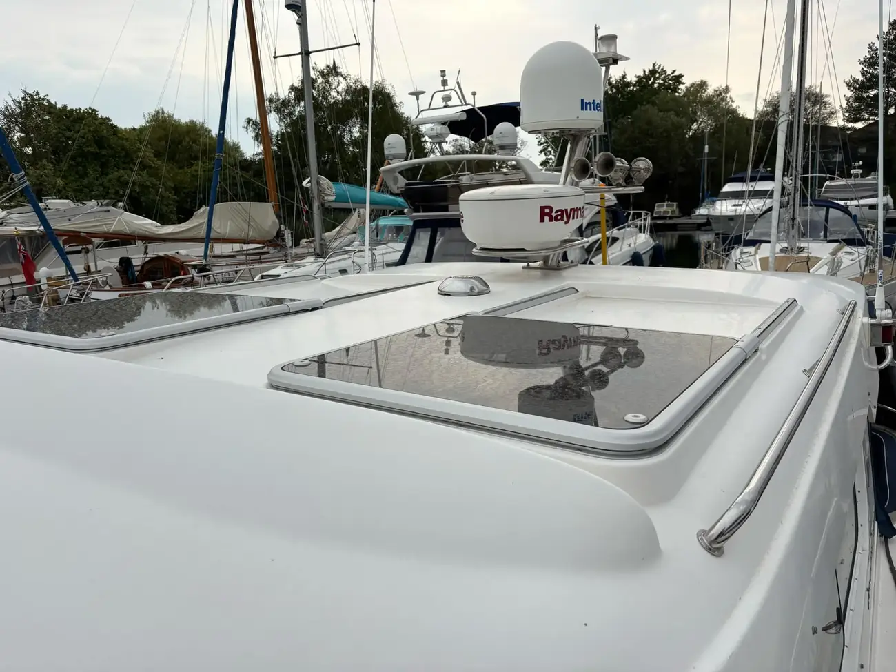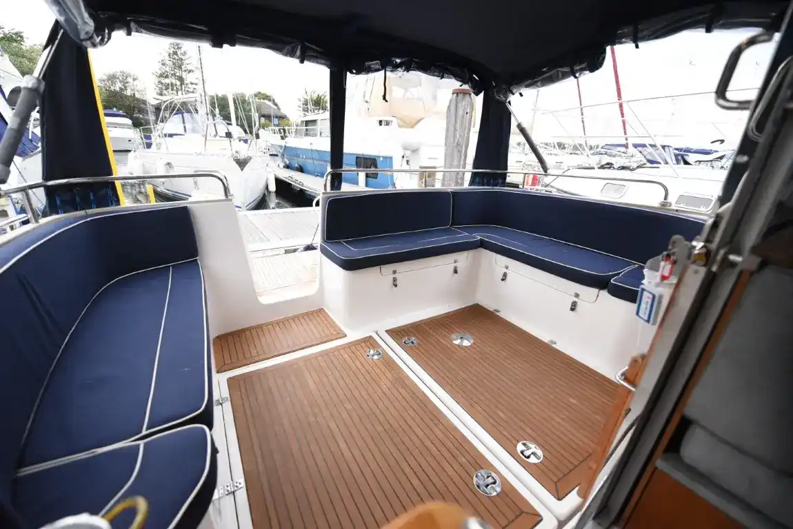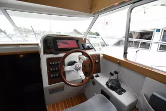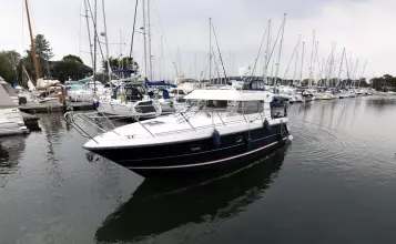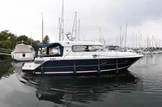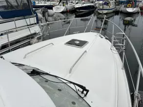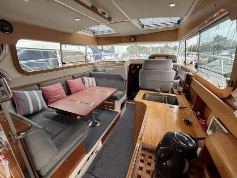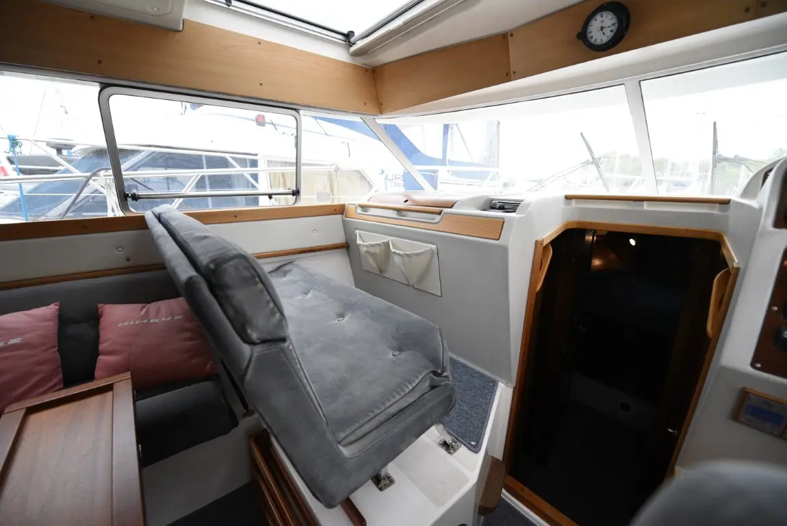 2005 Nimbus 350 Coupe with twin Volvo KAMD 43 inboard diesel engines on V-drives. A 2006 model, ‘Indigo’ is a fine example of this robustly built boat from Scandinavia. Spacious saloon with fabulous convertible double co-pilot seat for comfortable cruising when underway. Separate heads compartment with shower and electric toilet, and two comfortable double cabins with a range of storage lockers throughout. Easy manoeuvring with bow and stern thrusters. The inventory also includes hot water, heating and transom shower. Ideal couples cruiser with room for guests. Available to view by appointment in Chichester.
