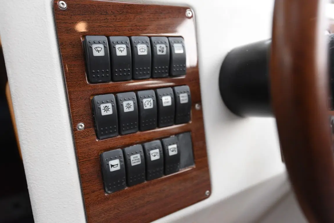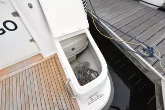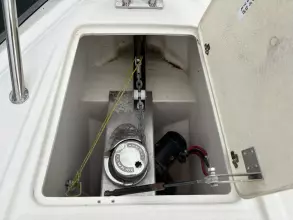 · Electric anchor windlass with foot switches on deck and controls at helm