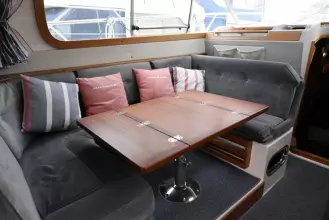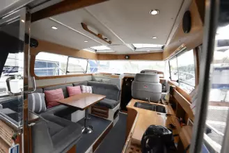 · Saloon with C shaped seating to port, with forward seat convertible to double forward facing co-pilot seat