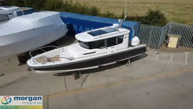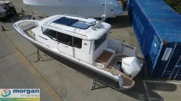 The high spec Nimbus Commuter 9 is designed for all-season functionality, featuring a smart layout, exceptional performance, and signature Scandinavian styling. It is equipped with a Cold Fusion White Mercury Verado V8-300 outboard engine and a Nordic oak interior. This model offers comfort, control, and practicality, along with a savings of over £51,000 on the RRP. It includes numerous extras such as a galley, bow sunpad, two sunshades, teak, and a comprehensive electronics fitout with two 12" Navionics screens, VHF, autopilot, radar, and hifi. The boat features a foiled hull in graphit and a manual glass roof hatch with sun blinds, making it capable offshore and stylish in the marina. This 2025 model Nimbus Commuter 9 is in stock at Morgan Marine and available for viewing 7 days a week. Note: library photos may not reflect the specification of the boat.