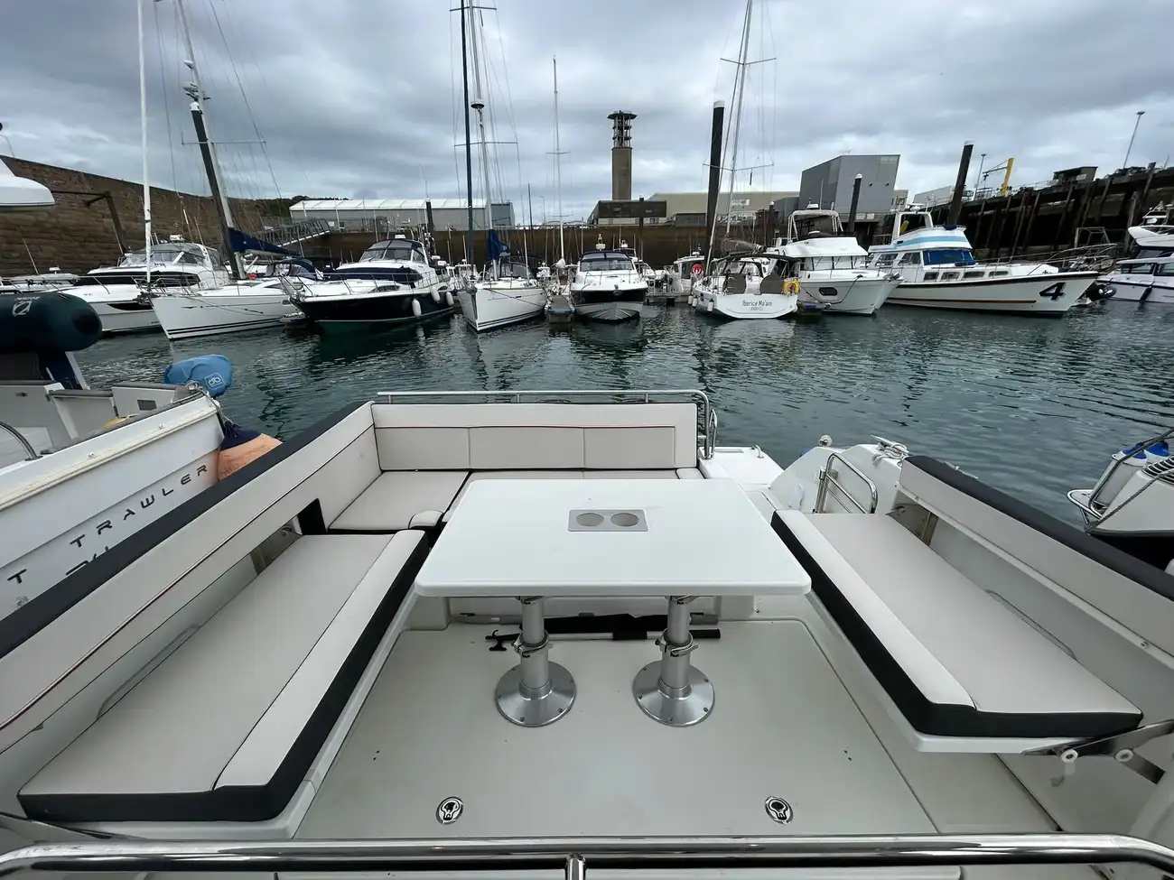 - Forward cockpit: A vast, secure lounge—when at anchor—complete with integrated chaise-style loungers and back rest for ultimate relaxation.