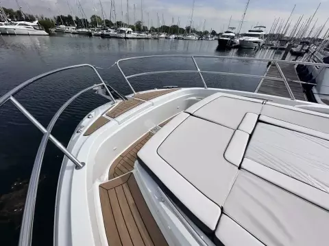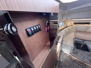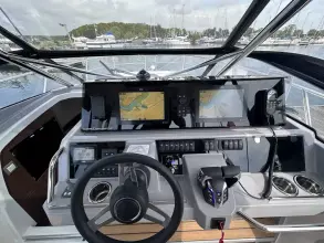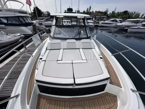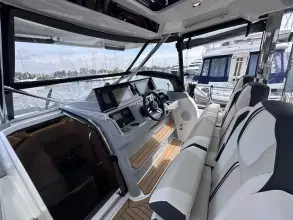 Twin white Yamaha 450hp engines with electronic Shift Fly-by-Wire system. Capable of close to 50 knots but effortless cruising at 20-30 knots.