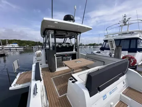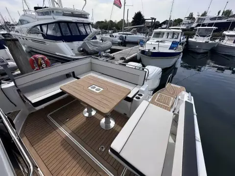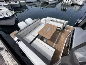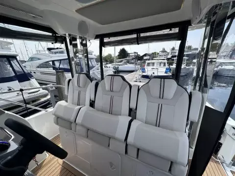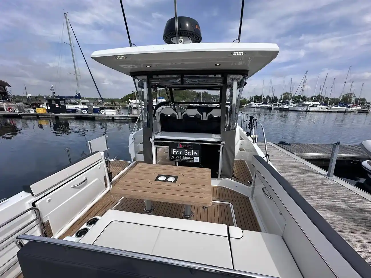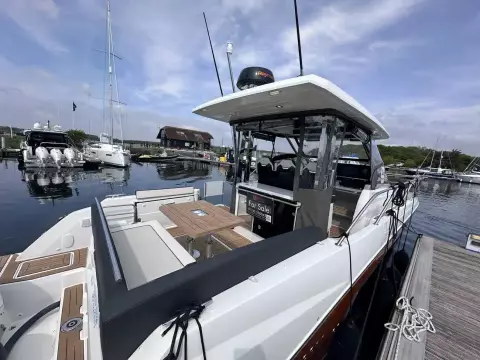This new Jeanneau Cap Camarat 10.5WA Series 2 will arrive with us Spring 2026 and will be the UK's first high windscreen version PLUS Striking Grey gelcoat. It is fitted with the mighty twin white 450hp Yamaha XTO engines with Joystick and integrated bow thruster.