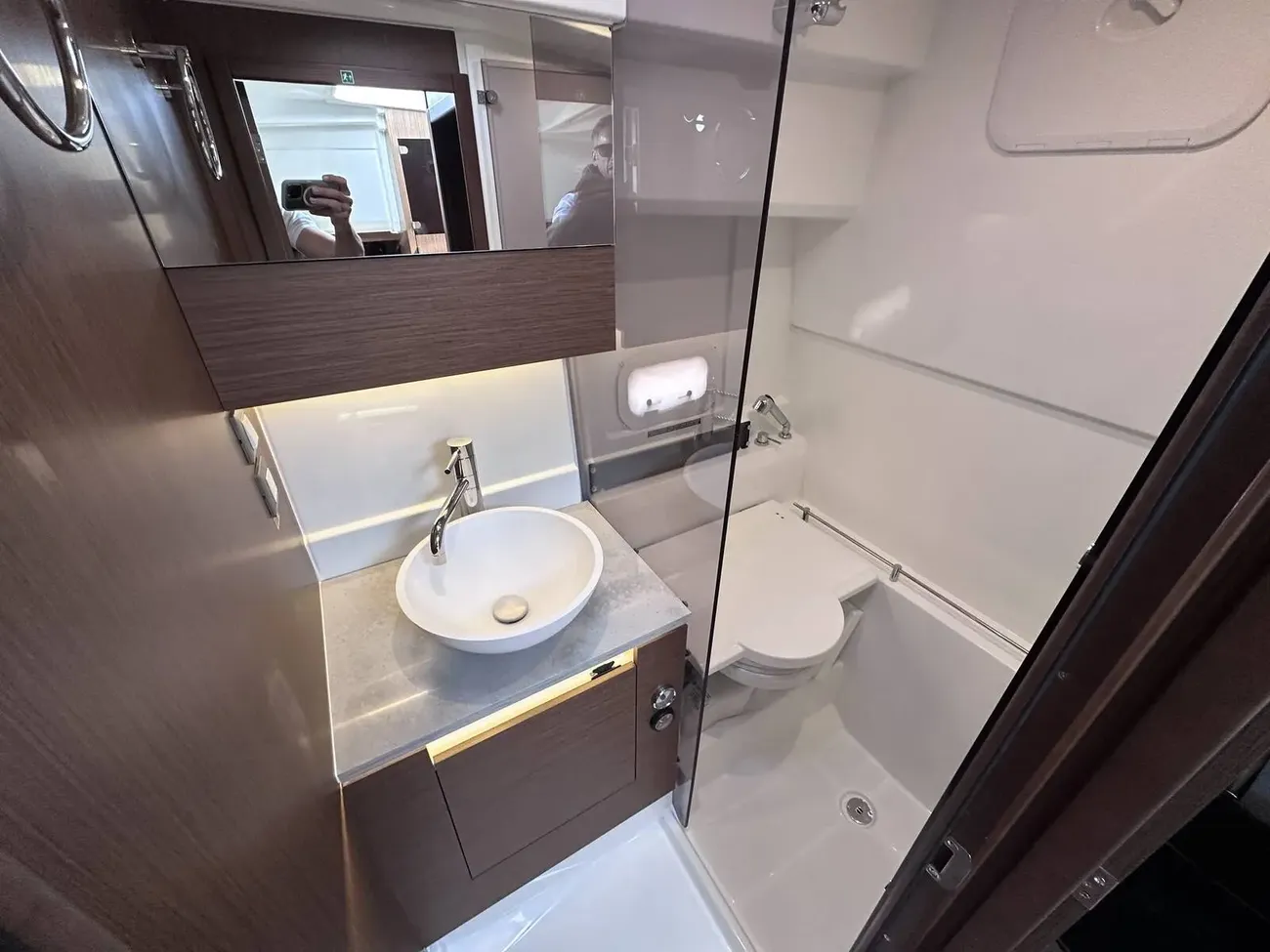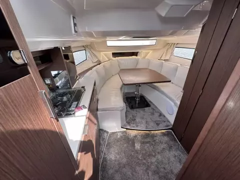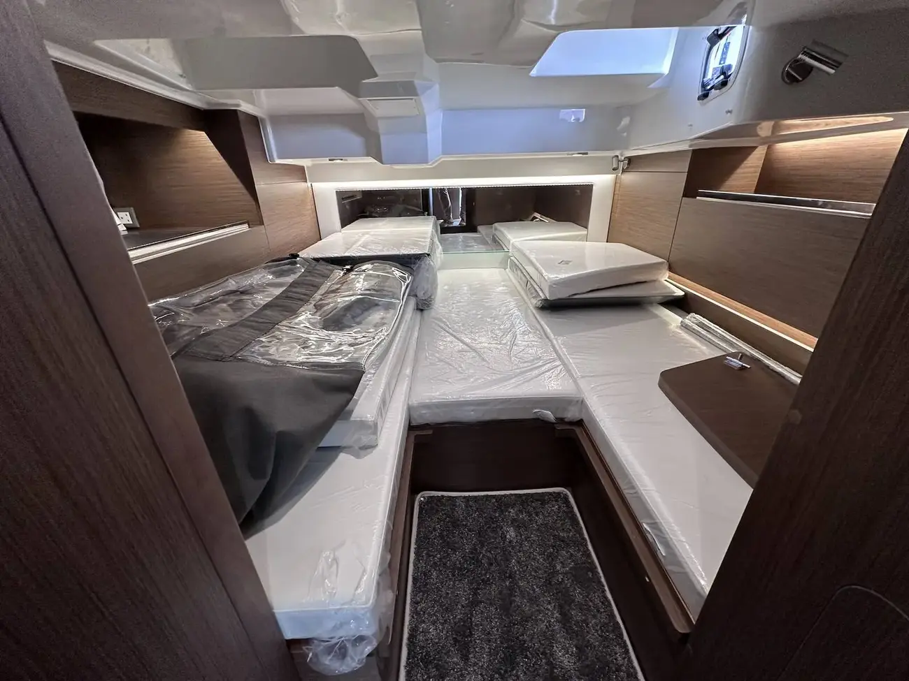 The aft cabin with its own private door allows for complete privacy, quite a unique feature for such a sporty boat that just demonstrates how clever Jeanneau are with the use of space. This cabin has opening portholes, a double berth conversion kit, and generous storage. Bespoke interior carpet set.