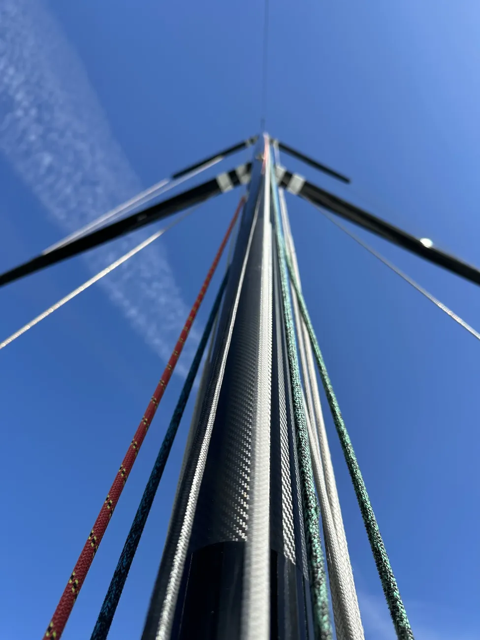 • Full Dyneema backstay replacement (backstay, cascade, purchase, control lines) – April 2025
