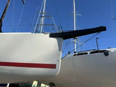 • Long Carbon bowsprit for Code 0 and Asymmetric spinnakers, with upgraded friction rings