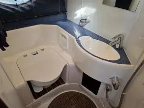 • Heads: Spacious with electric toilets, walk-in showers, and a vanity unit with sink.