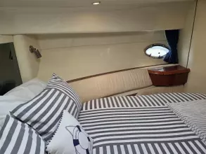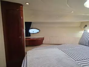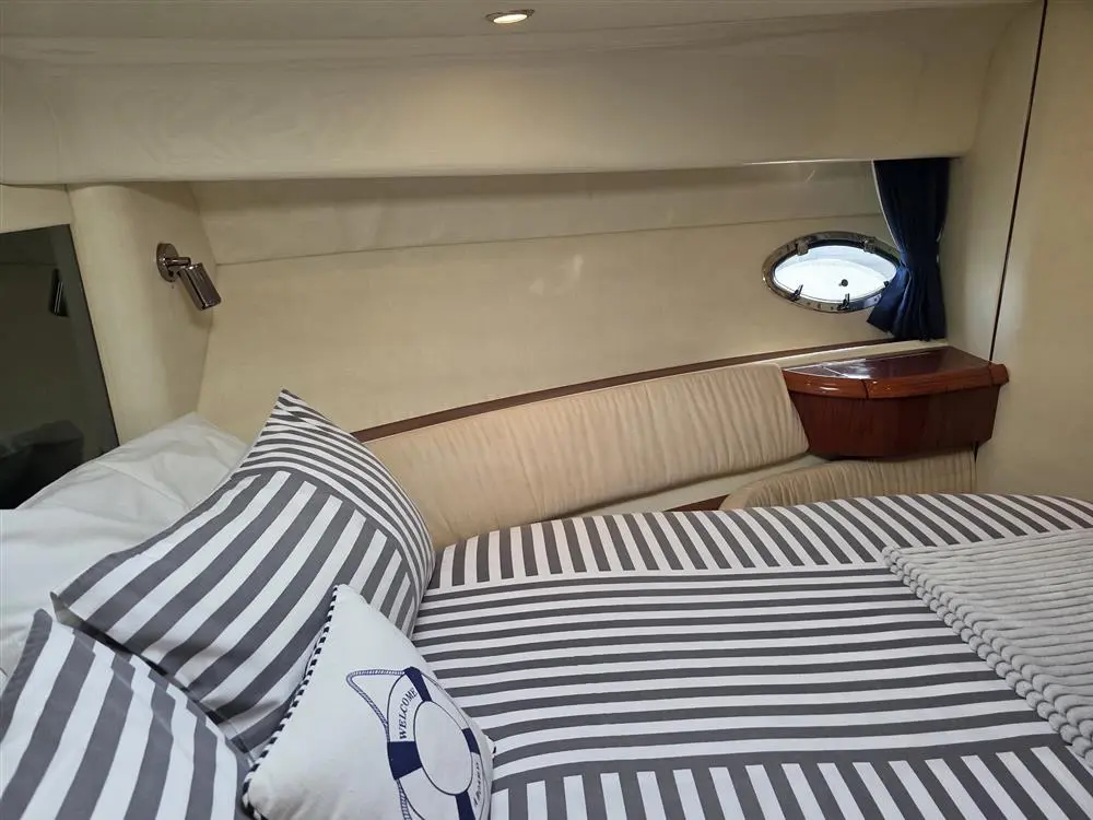 • Master Cabin (Forward): A spacious island double berth, wardrobe storage, vanity unit, and private access to the heads.