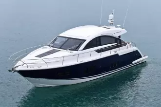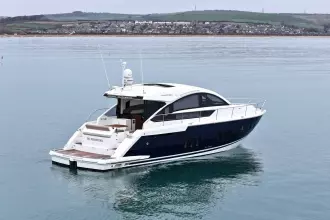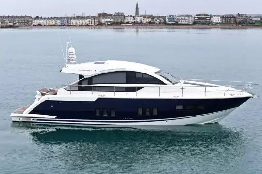This 2012 Fairline Targa 50 GT is equipped with Twin Volvo Penta D9-575 diesels. It features Bow & Stern Thrusters, Trim Tabs, a Teak laid cockpit, and a Teak bathing platform. This particular model has been well maintained by the current owner.